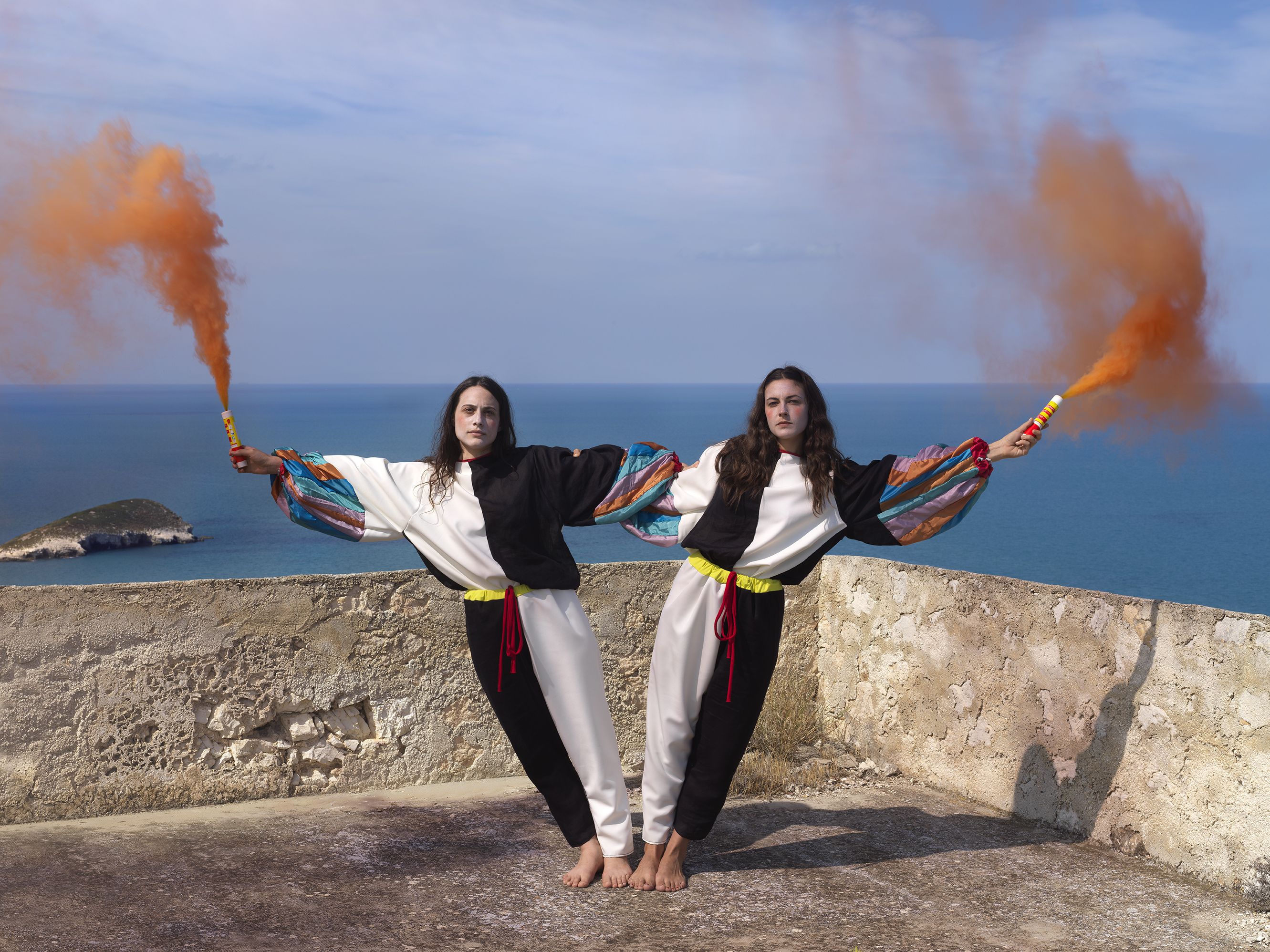 «In mostra ci sono quasi tutte nuove produzioni che più che interagire con il territorio, lo studiano, lo reinterpretano e ci offrono delle chiavi di lettura nuove. Alcuni lavori prodotti sono strettamente legati alla location in cui sono esposti, come quello di Luigi Presicce, la cui performance è stata realizzata presso una torre a Vieste. Quello di Elena Bellantoni non sarebbe stato possibile senza il coinvolgimento degli operatori del territorio e nello specifico del Porto Museo di Tricase. Quello di Pamela Diamante si è modellato in relazione allo spazio, quasi come la pietra di Apricena di cui il lavoro è fatto. Il lavoro di Lucia Veronesi è frutto di un’attenta ricerca e analisi del paesaggio di Polignano a mare e dintorni. L’opera di Giuseppe De Mattia nasce dall’intimità dell’orizzonte di fronte casa natale, mentre Luca Coclite si muove nell’intimità del voyerismo digitale. Gabriella Ciancimino, infine, ci riporta al legame con le nostre origini: il Mediterraneo».