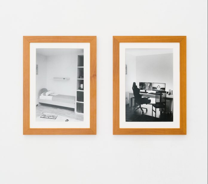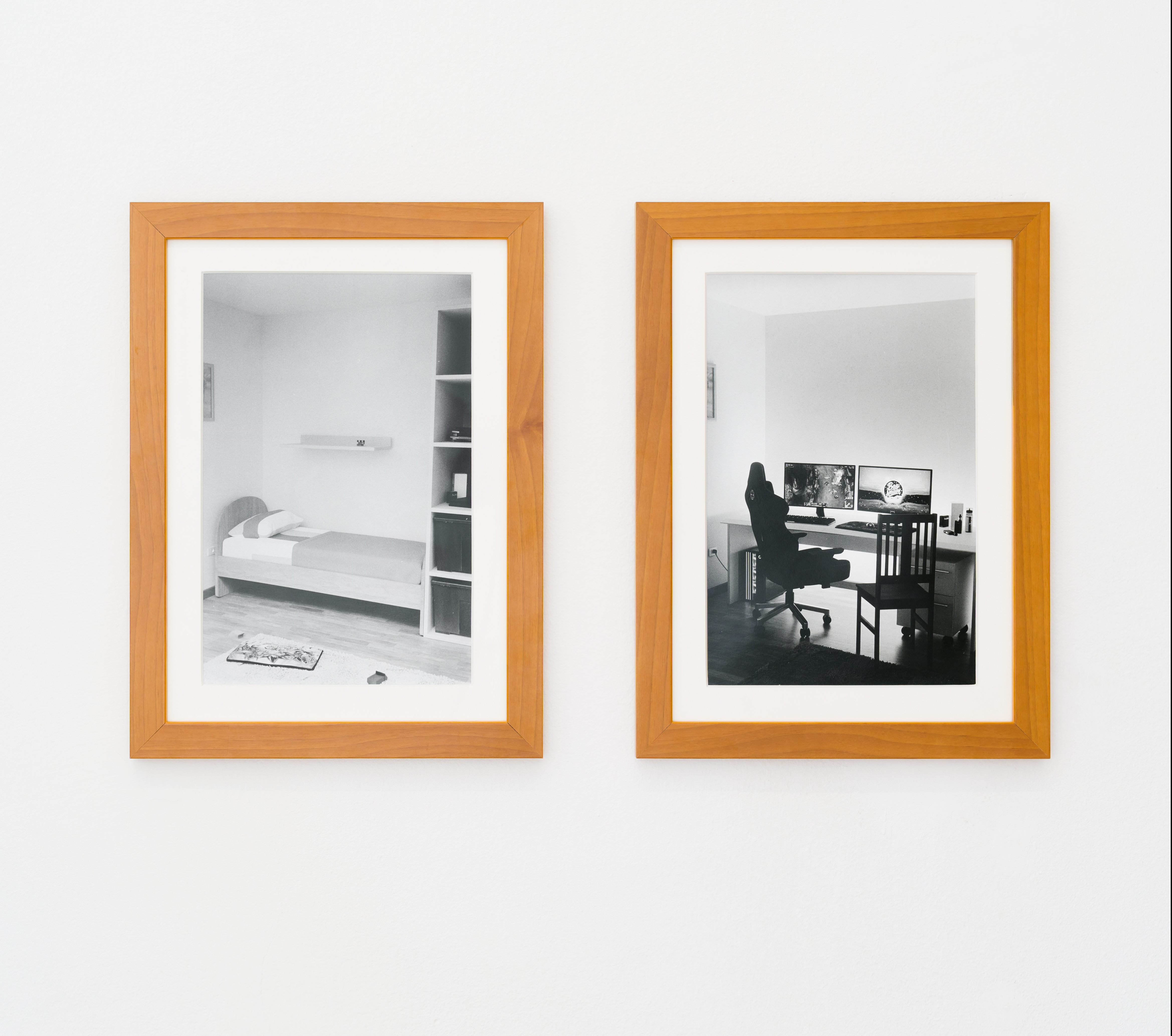 In questa mostra, visitabile fino al 15 maggio 2024, il giovane artista Stefano Stoppa (Venezia, 2001) affronta l’ancestrale paura della perdita di memoria, di quelle tracce che rappresentano i nostri connettori con il passato, percorrendo a ritroso il suo tempo perduto attraverso due operazioni: in un primo momento, egli ricrea a memoria una stanza in cui è stato ospitato (salotto 2017, cameretta doppia 2013, camera singola 2017, cucina 2018, tavolo da pranzo 2023) con un software di modellazione 3D. Dopodiché, scatta una fotografia analogica all’ambiente virtuale visualizzato sullo schermo che viene poi stampata ai sali d’argento, incorniciata ed esposta.