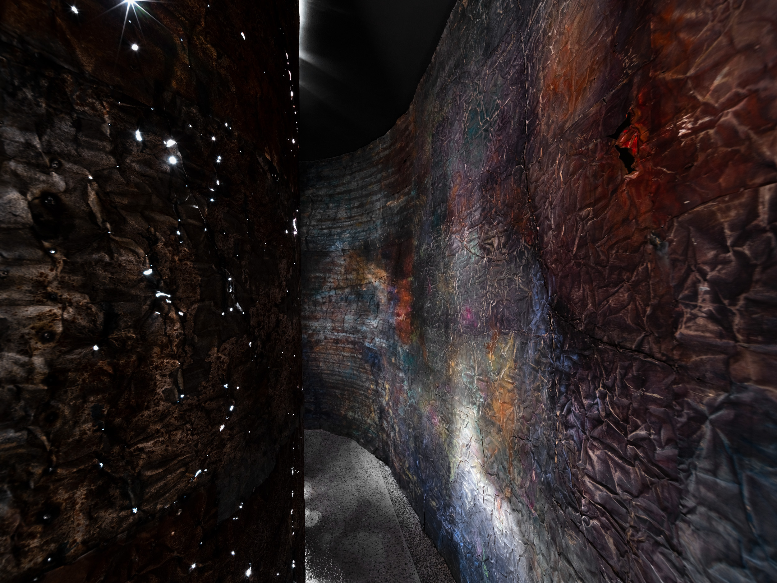 «Il pubblico ha accesso a una serie di installazioni immersive in un vero viaggio nel tempo. «In queste opere – spiega Danilo Eccher – è la ruggine che si ossida sul metallo, lo graffia, lo scalfisce, è lei a mostrare il volto del suo tempo ed è su questo viso che il colore accarezza le cicatrici, indica le espressioni, cura le ferite. Sono lamiere che conservano tracce della loro memoria, ricordi fatti di lavoro, fatica, sofferenza, forse anche dolore. Ogni graffio, ogni lacerazione, ogni piega sussurra un proprio racconto, offre allo sguardo l’immagine simbolica di un accadimento che si è perso nell’abbraccio del tempo». «Sono», continua il curatore, «memorie ossidate, le stesse pelli metalliche che sfidano, in una metafisica grotta carsica, il tempo geologico di rudi stalattiti e stalagmiti». Attraversare gli ambienti del Salone Verde è un’esperienza da vivere in una sorta di molteplici realtà.