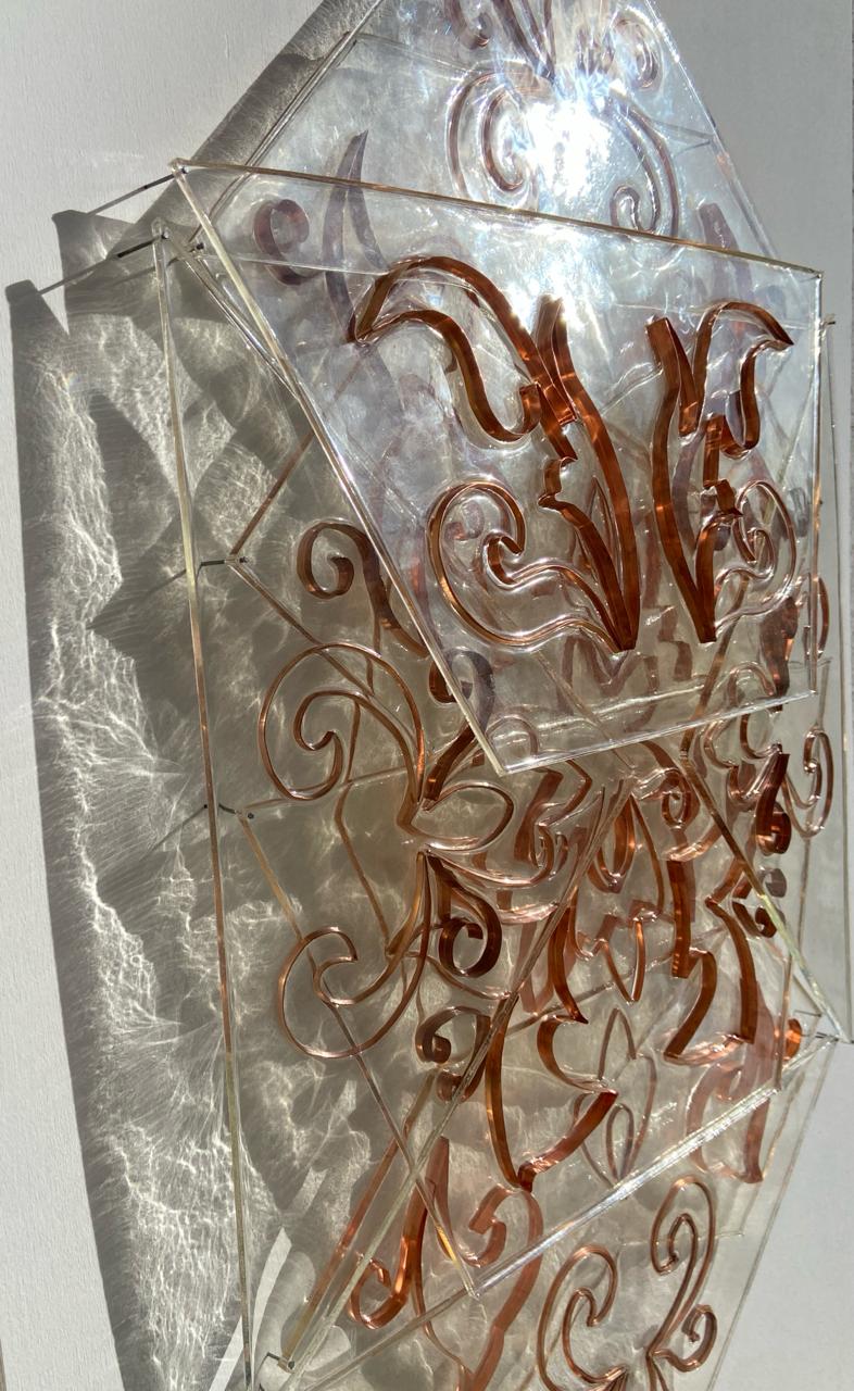 Manuela Valloscuro, Metamorfosi, resina e lamina di rame, 55 x 85 cm, 2025, courtesy Spazio Genesi