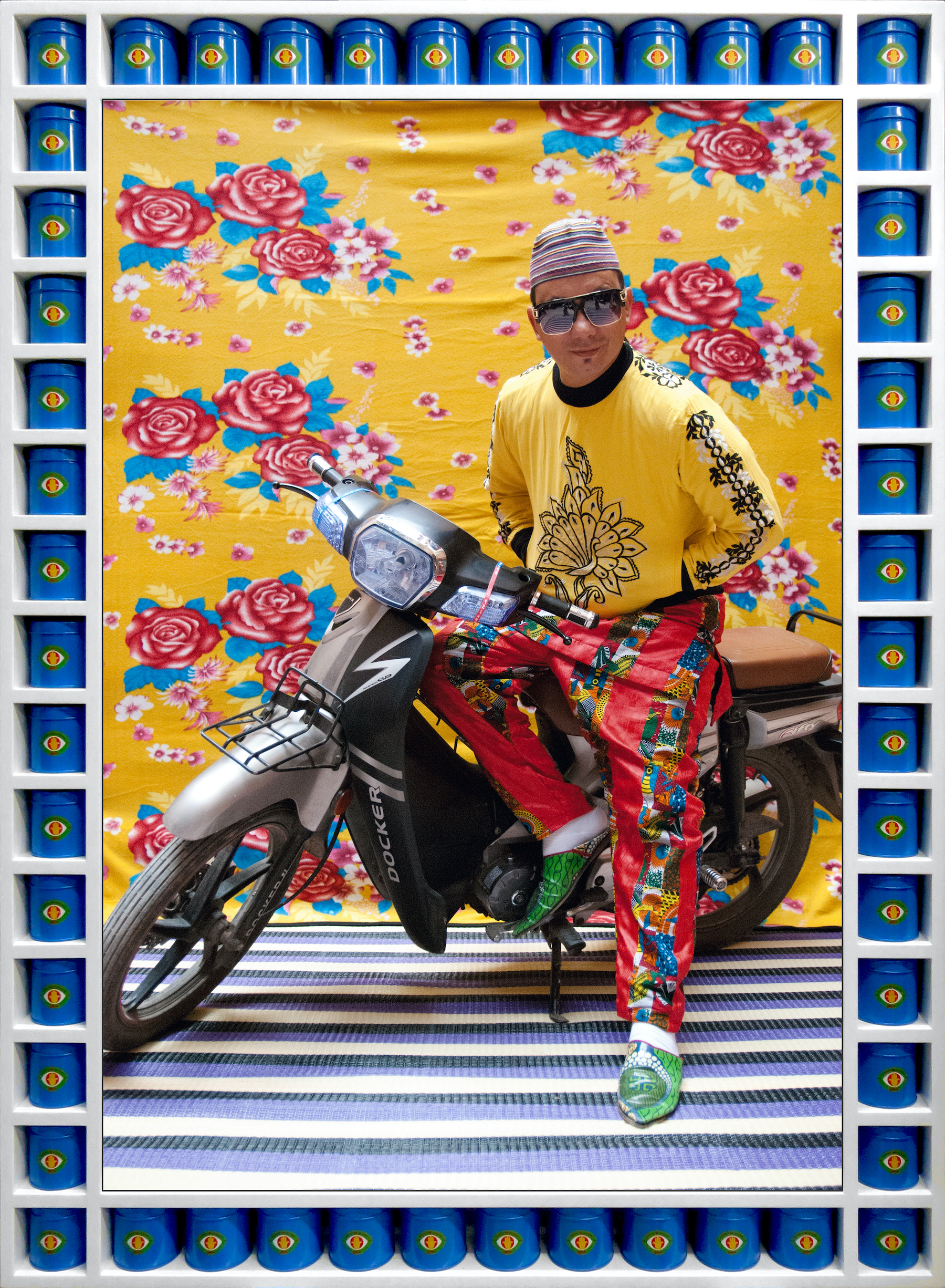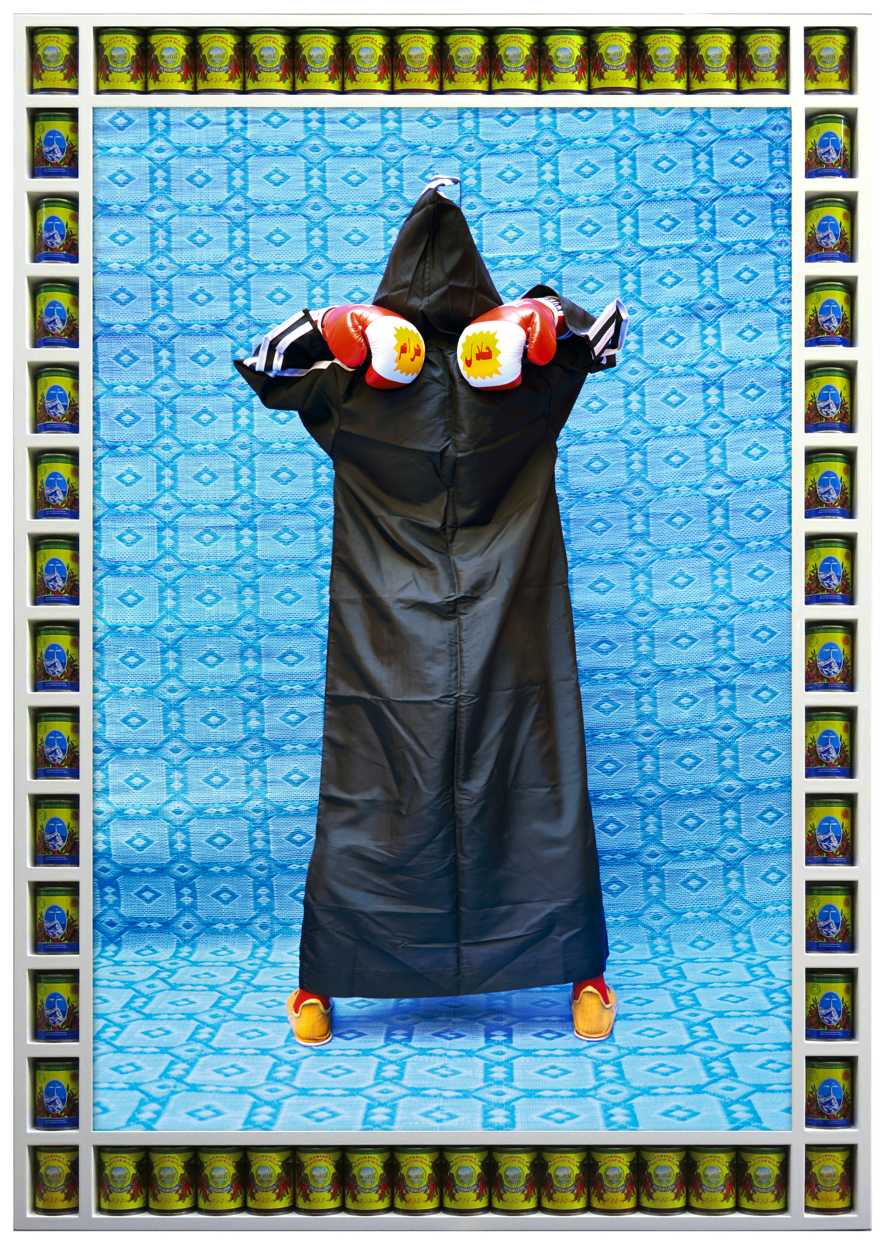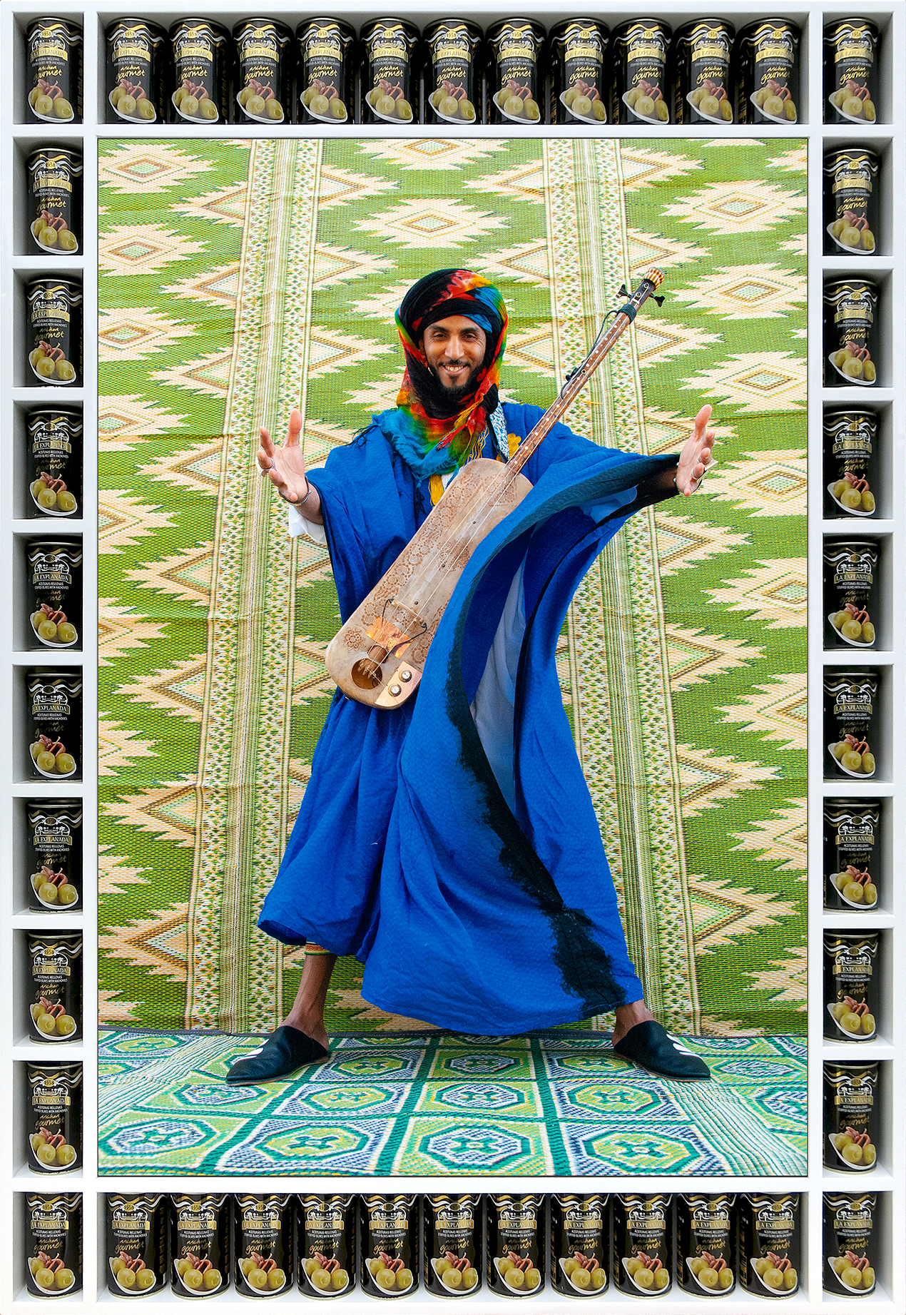 Ed è proprio questo uno degli scopi dell’artista, comunicare la propria cultura anche attraverso gli oggetti quotidiani. «Queste cornici sono ispirate ai mosaici marocchini e sono scelte con cura in relazione al soggetto dell’opera d’arte. Alcune di esse sono lattine autentiche provenienti dai veri negozi di Marrakech».