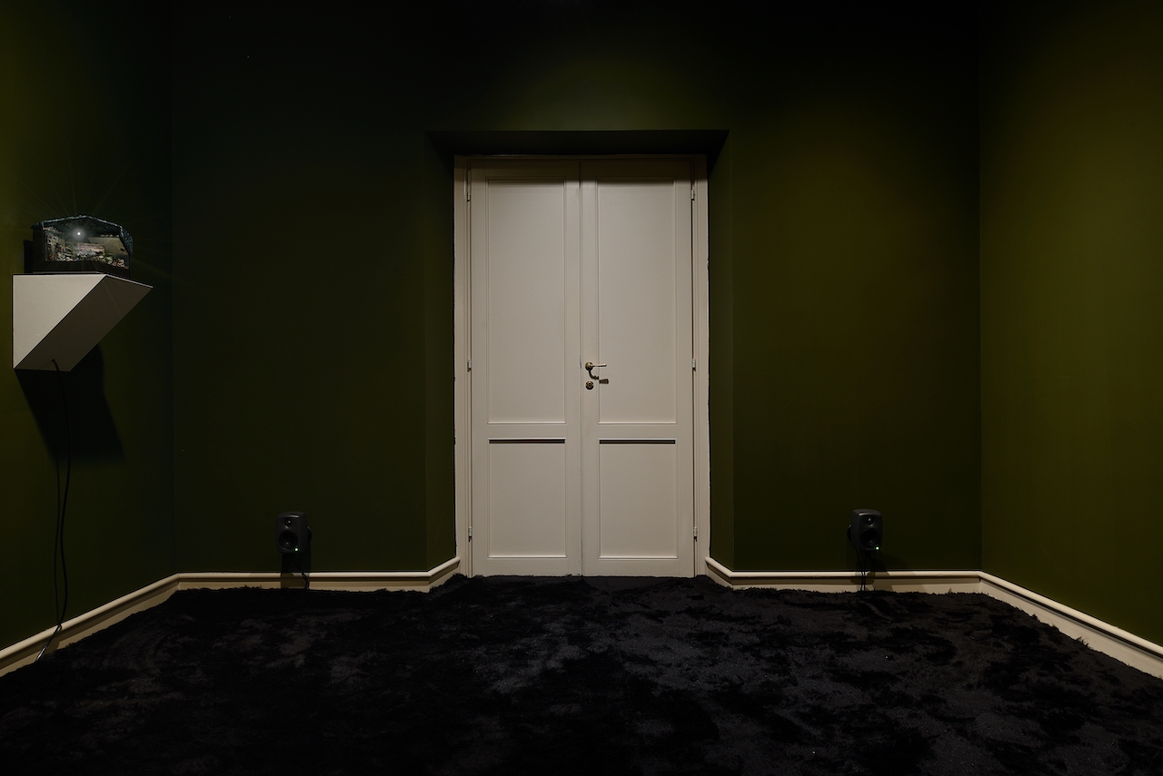 La mostra si conclude con La quinta stanza (The Fifth Room), opera site-specific di Nico Vascellari (Vittorio Veneto, 1976), che attua una vera e propria operazione meta-spaziale, permettendo ai visitatori di entrare virtualmente in un’ultima stanza (la quinta, appunto) fuori dalla loro cognizione spazio-temporale. Attraverso uno schermo che trasmette le immagini riprese da una videocamera di sorveglianza, ci viene permesso di osservare ciò che accade al suo interno: una lampadina si muove con moto circolare in uno spazio vuoto, senza mai fermarsi, in un loop angosciante. L’opera, superando la dimensione fisica della mostra, rimanda ai segreti che le realtà domestiche spesso nascondono e richiama anche la storia di Guido Zabban, uomo ebreo che, nel 1943, si nascose per nove mesi dai tedeschi, nello stesso palazzo che ospita la mostra, sfuggendo alla deportazione.