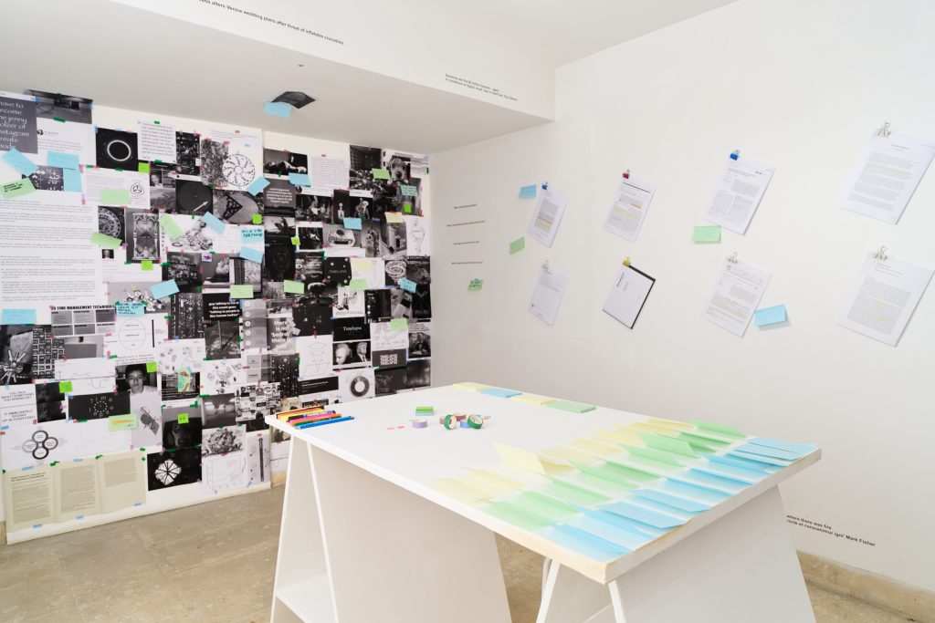 Il punto più radicale è però la stazione di ricerca al piano superiore, un “conglomerato eteroclito” dove collassano saggi, troll, pubblicità e meme. Non si tratta di un semplice laboratorio interattivo, ma di una discarica dell’inconscio collettivo trattata come scherzo serissimo. Qui la distorsione diventa metodo, resilienza e catalizzatore di cambiamento. La curatela rinuncia alla linearità per rivendicare il caos come pratica critica, restituendo il tempo non come merce ma come durata condivisa.