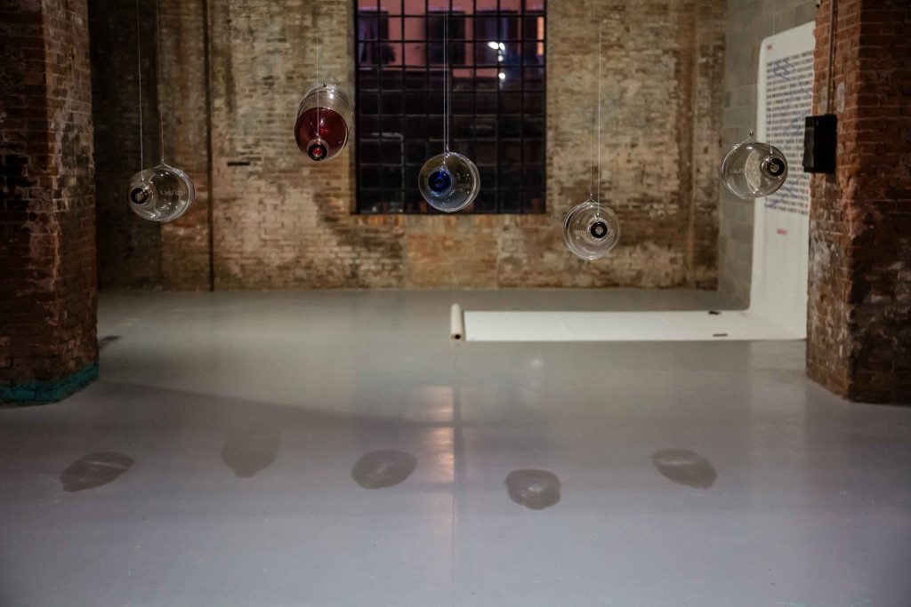 Contrappunto si propone sia come un momento di riflessione attorno ai concetti di creativo, sia come critica nei confronti della città di Venezia, denunciandone i giochi di poteri che la attraversano, e che ne decreteranno la sua morte. Dalla parete Enarmonia, 2023 infatti emerge lampante la parola “infetta”, forse per suscitare nei visitatori un dibattito rispetto al futuro della città.