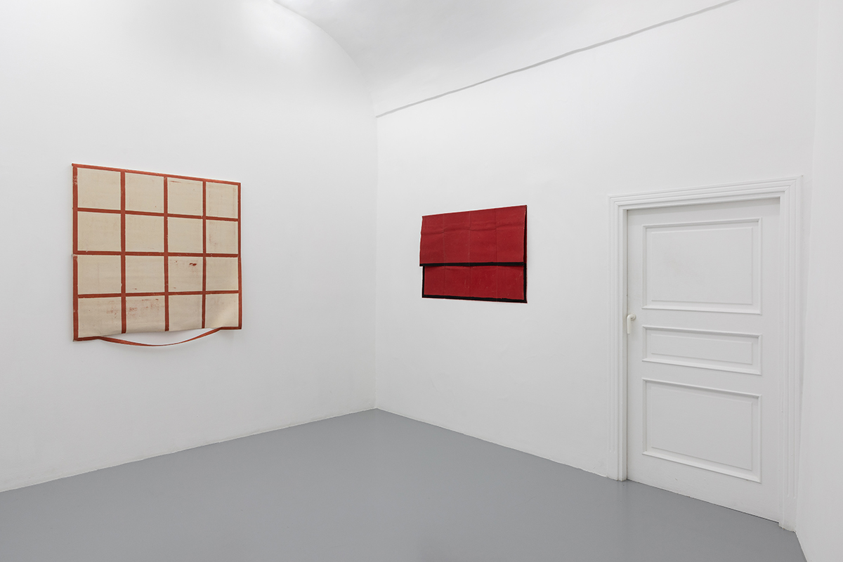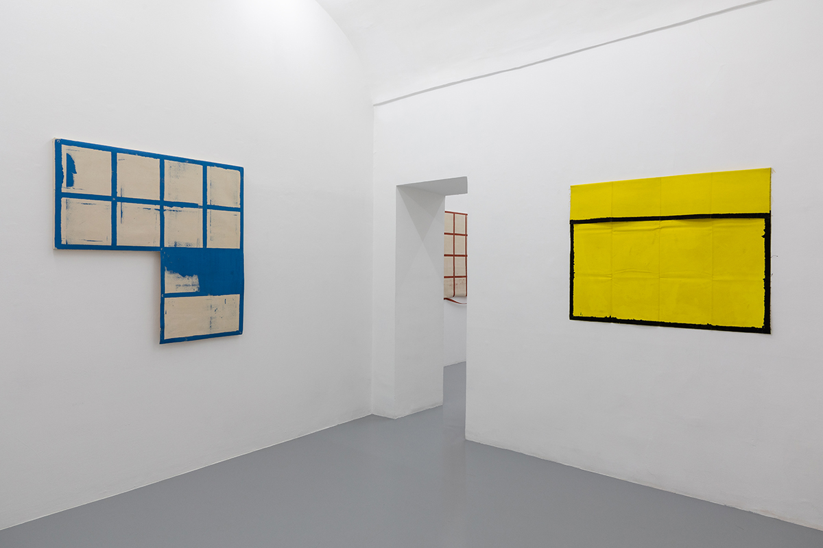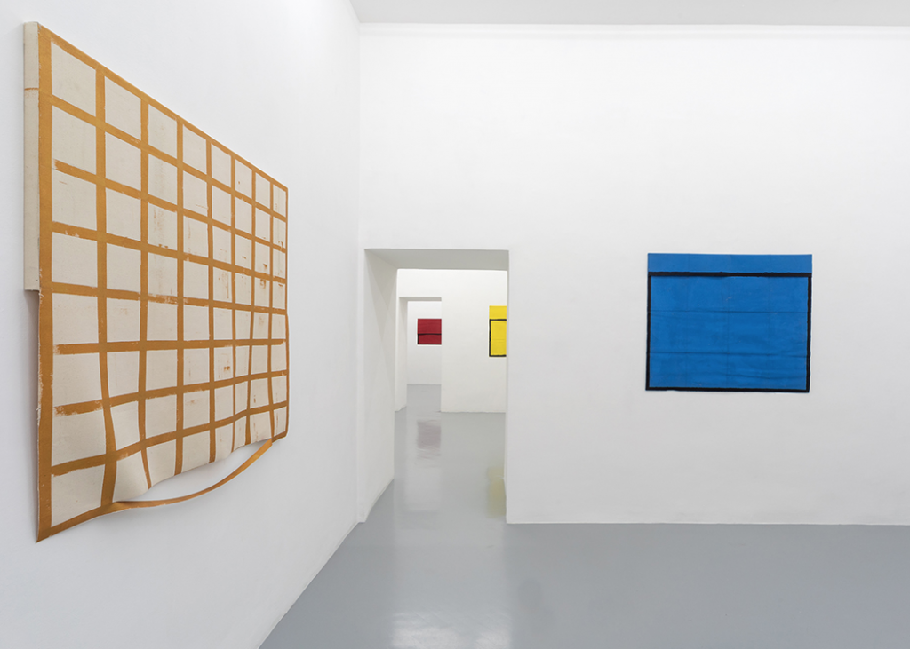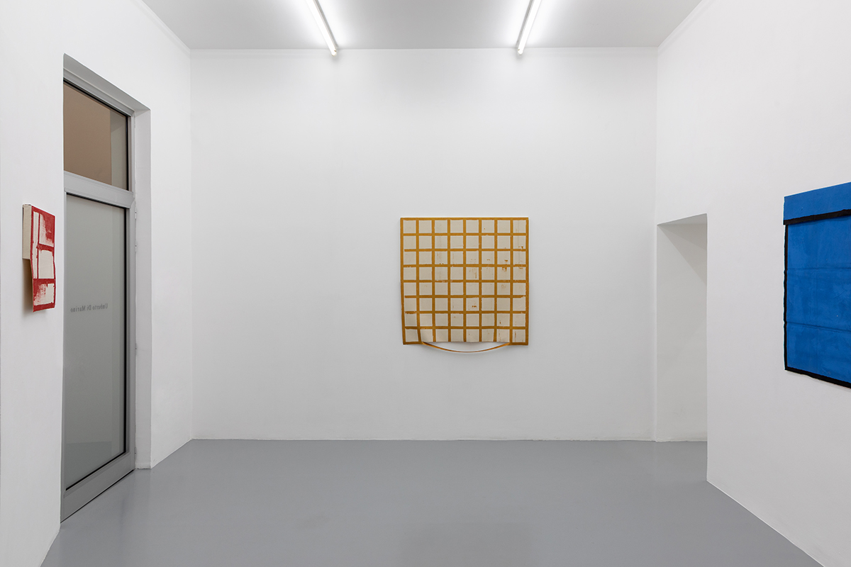 L’astrazione geometrica ha sempre qualcosa di nuovo da dire: lo sa bene l’artista Eugenio Espinoza che fa ritorno alla Galleria Umberto Di Marino di Napoli con la sua seconda personale “Tre stanze, tre mesi”, dopo “Unlocking Something”, del 2017. È lampante l’intento dell’artista venezuelano di lavorare appositamente per lo spazio di via Alabardieri – come si evince dal titolo – ma anche di superare le sue note griglie in bianco e nero, introducendo il colore e superando i limiti delle geometrie auto-imposte. Dunque, l’intenzione di Espinoza è principalmente quella di fare ordine: ordine spaziale, sociale, esistenziale. Ma è anche quella di andare oltre il concetto di ordine precostituito, di disfarlo e ricomporlo, di adattarlo ai cambiamenti tanto del mondo esterno che del proprio sentire. È questo il caso dell’olio su tela About a new system (2020), che si colloca proprio in apertura, nella prima delle tre stanze, e che manifesta la volontà di “rompere gli schemi” attraverso una letterale lacerazione della tela, suddivisa, in rosso su bianco, in una griglia di dodici quadranti.