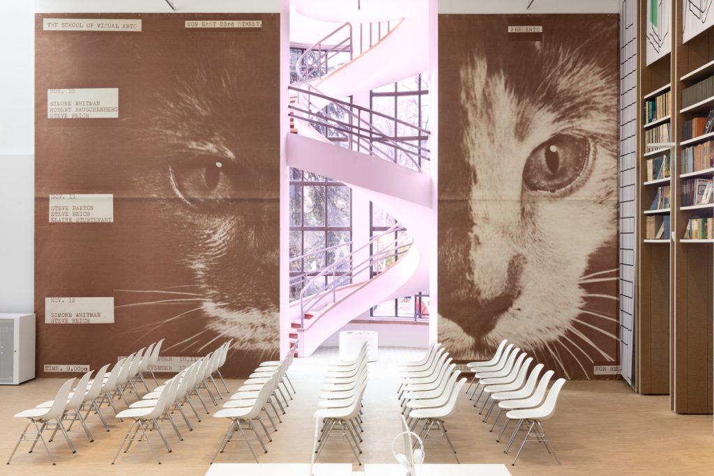 «Hit my nose with the stem of a rose. Cherry blossoms are razor blades. Lavender laughing lustful». Così le appariscenti tele di Perfect Flowers (2017-2023), posizionate sullo Scalone d’Onore della Triennale, incorniciano alcune celebri frasi del poeta in un gioco cromatico ambivalente, di sfondo e testo in grado di suscitare sensazioni a metà tra la cartellonistica stradale e impressivi quadri di parole Dada.