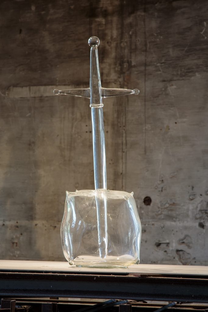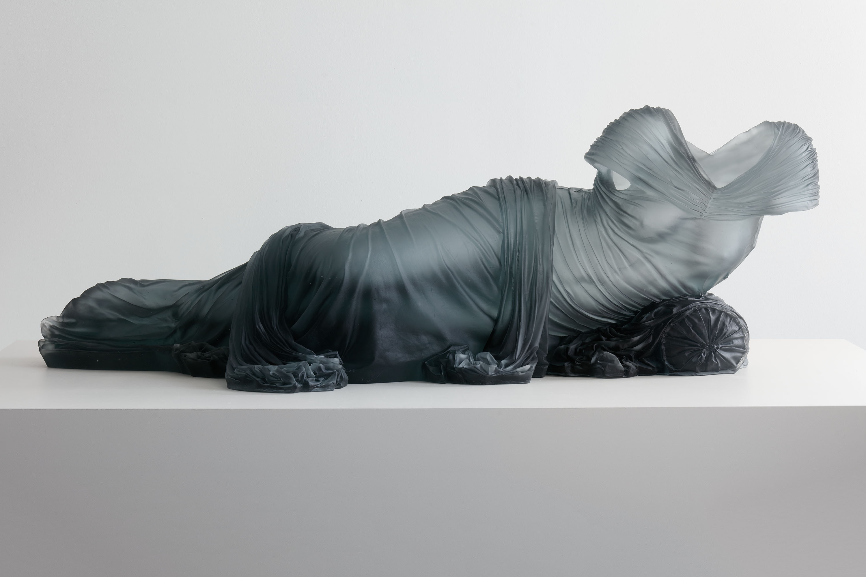 La Spada nella Roccia è perfetta: Liliana Moro non la contamina con il colore, ma lascia il vetro nel suo stato grezzo, totalmente trasparente, trasmettendo l’idea della forza indistruttibile dell’arma secondo la tradizione medioevale. Il corpo disteso di una divinità greca, Reclining Nocturne 3 di Karen LaMonte ci fa viaggiare ancora più lontano nella storia, agli albori dell’arte occidentale, nella contemplazione della bellezza del corpo femminile, la cui nudità è celata solo dal velo, qui panneggiato magistralmente grazie allo studio delle stoffe. La sua bellezza è eterna, la sua forza indistruttibile, la sua anima delicata, come quella della materia di cui è forgiata, il vetro.