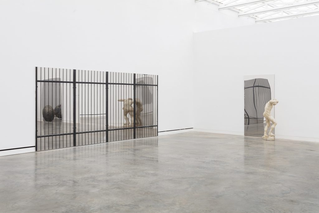 Autoritratto con quaderno (1962-2008) è un’altra opera specchiante in cui l’artista ha realizzato una serigrafia di un’immagine di se stesso mentre guarda il proprio quaderno. Ragazza appoggiata (1962-2007) esplora invece l’atto di guardare ed essere guardati, concetto centrale dell’esperienza artistica ed elemento cruciale dei Quadri specchianti, mentre Adamo ed Eva (1962-1987) è destinato – per usare le parole dell’artista – a rappresentare «l’autoritratto del mondo, aperto alla partecipazione di tutti». Infine La gabbia (1962-1974) – il motivo comparve per la prima volta nella pratica di Pistoletto alla fine degli anni Sessanta, durante il lavoro con il suo gruppo teatrale di strada e performance, Lo Zoo – guarda alle tematiche della detenzione, della persecuzione e del potere dello Stato.