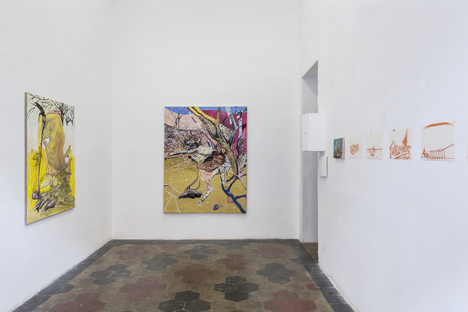 Il titolo della mostra di Lorenzo Aceto da Quartz, tratto da una raccolta di favole per bambini famosa in Germania, è Wurzelkinder, letteralmente “i bambini delle radici” ed è esemplificativo della poetica dell’artista, che si sofferma visivamente, ma anche e soprattutto concettualmente, sul rapporto tra natura e aspetti dell’interiorità e della psicologia umana contemporanea. La pittura di Aceto è popolata da elementi naturalistici: ossa, residui di piante, tronchi. Si tratta spesso di oggetti naturali in decomposizione, ma anche colti, quindi, in quel momento di soglia generativa tra vita e morte, dove, come voleva Aristotele, nulla tutto si trasforma.
