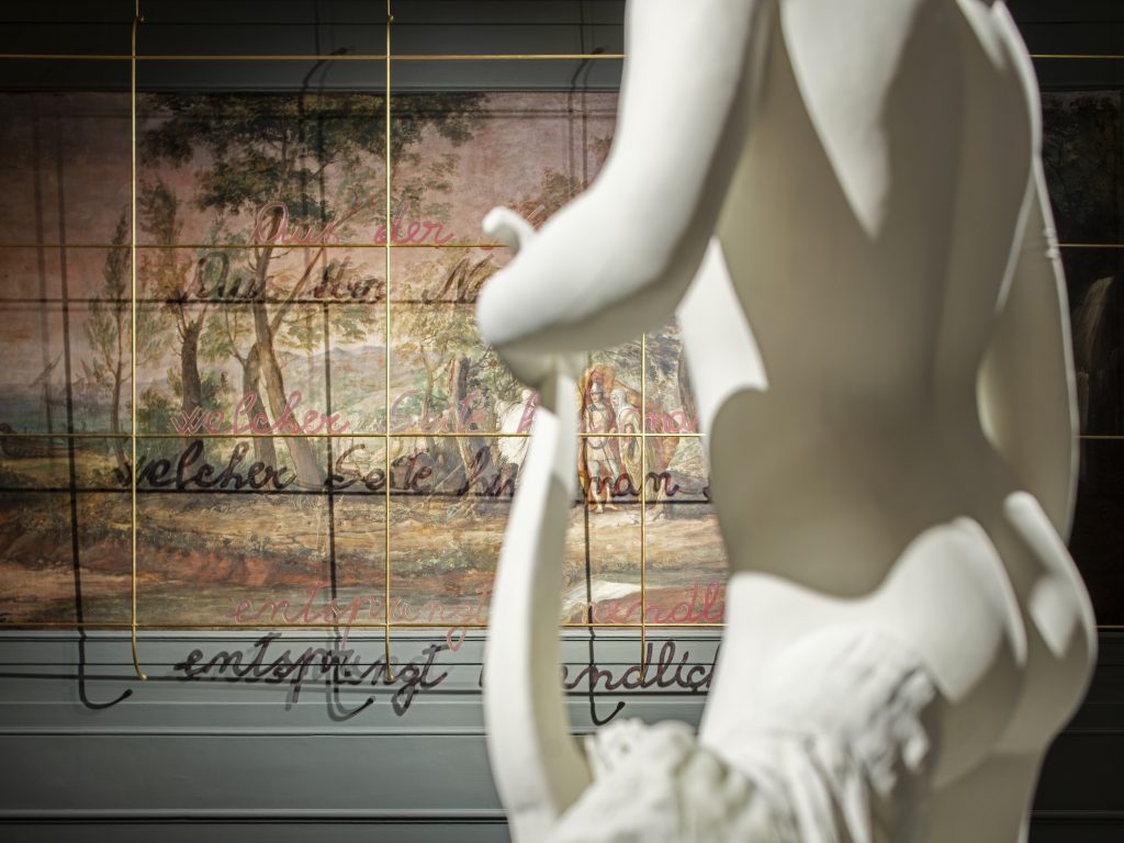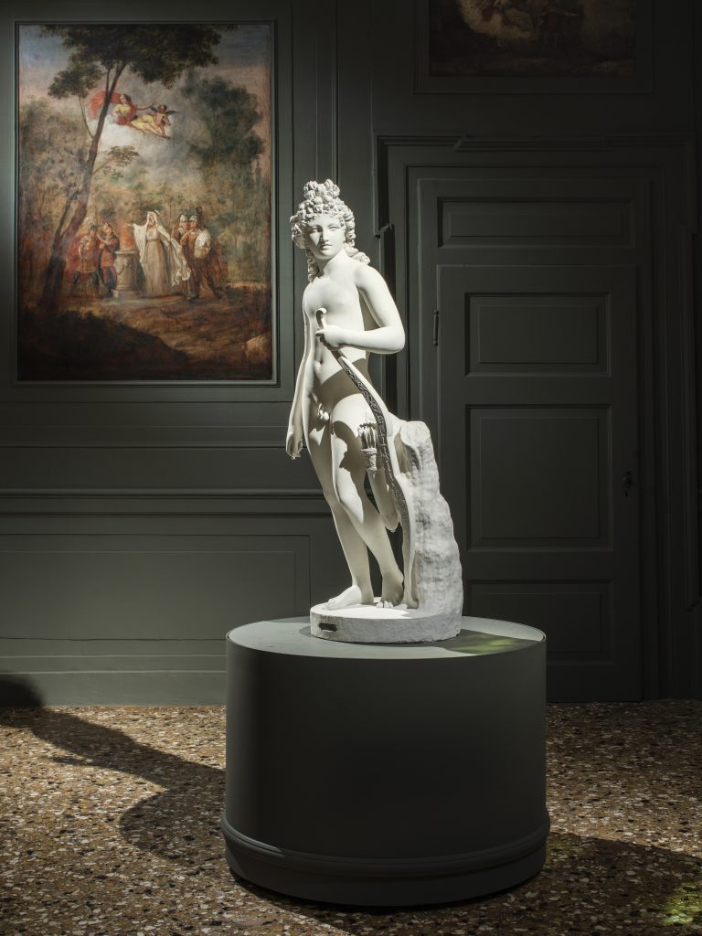 In cosa consiste, dunque, questo nuovo viaggio nel tempo e nelle abilità umane? Rispetto alla teoria di Wunderkammer del primo piano, altrettanto densa di arte antica, moderna e contemporanea, che segue però un filo conduttore, le otto nuove sale e la project room al piano secondo offrono uno Sturm und Drang cronologico e tematico. Ne sono esempi i busti romani che dialogano con I Gladiatori (1928-29) di Giorgio de Chirico e con Il Testimone (1991) di Mimmo Paladino, nel cosiddetto Antiquarium, mentre nell’installazione site-specific Over Nature (2021), Chiara Dynys riflette sul concetto arcadico di paesaggio, riecheggiando Goethe e il suo Viaggio in Italia, accanto al candore di un Amorino di Canova. Ancora, lungo il percorso espositivo ci si affaccia su realistiche vedute ottocentesche di Verona e del suo fiume Adige, come pure ci si può soffermare sul querceto dai toni allucinati dipinto da Mario Schifano negli anni Settanta, gli stessi in cui Carla Accardi si dedicava alle sue astrazioni plastiche e Alberto Biasi agli illusori dinamismi dell’arte cinetica.