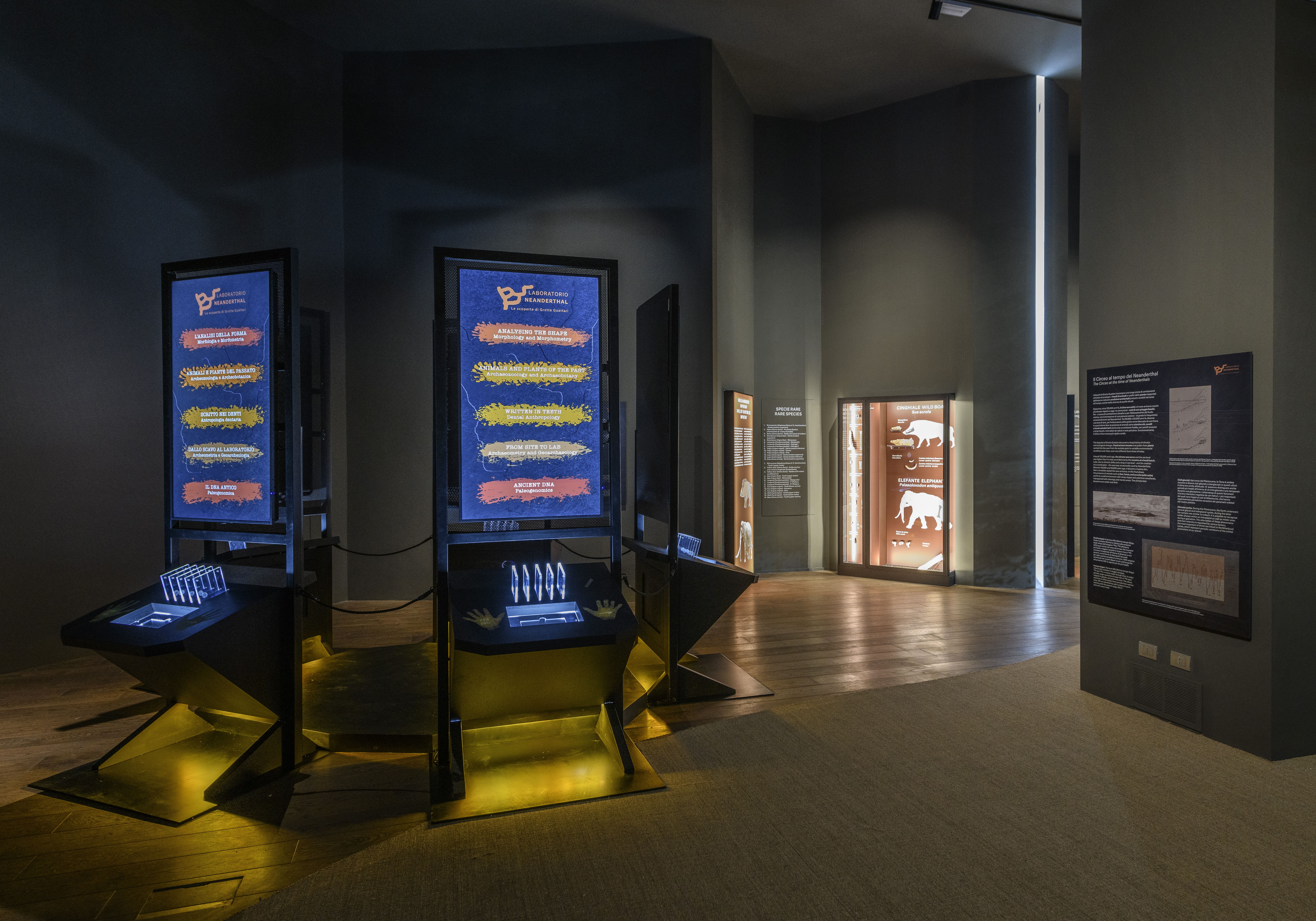 «L’allestimento propone diverse modalità di visita, da quella per i visitatori che desiderano guardare e leggere le informazioni essenziali su ciò che è esposto, a quella dedicata ai visitatori che hanno più tempo e desiderano approfondire su specifici supporti multimediali i vari e articolati aspetti della ricerca scientifica, per arrivare infine a quella interattiva in cui poter ascoltare dalla viva voce dei ricercatori e degli scienziati, sfiorandoli con la mano, le risposte ad alcune domande che tutti noi ci poniamo sui neandertaliani».