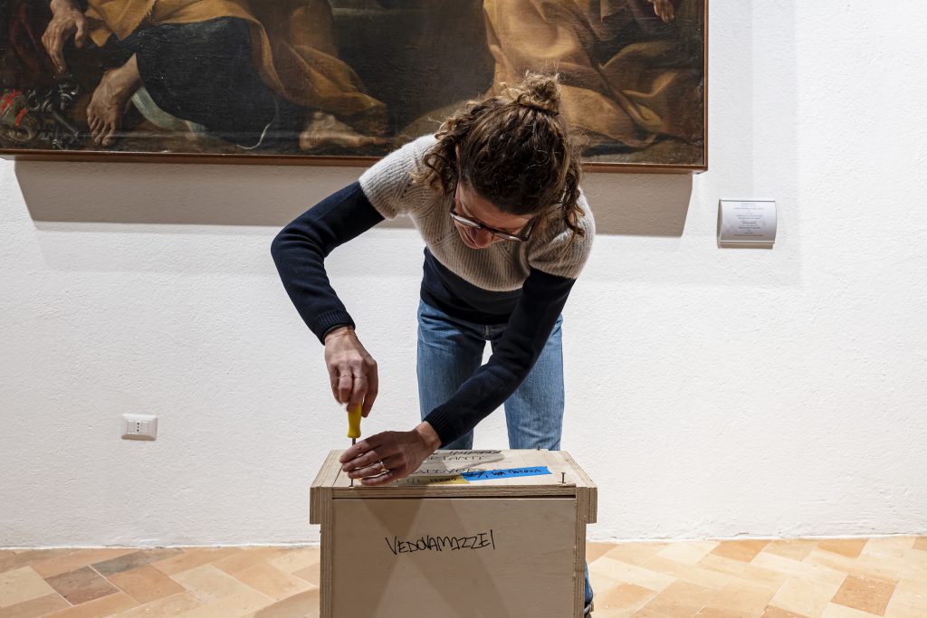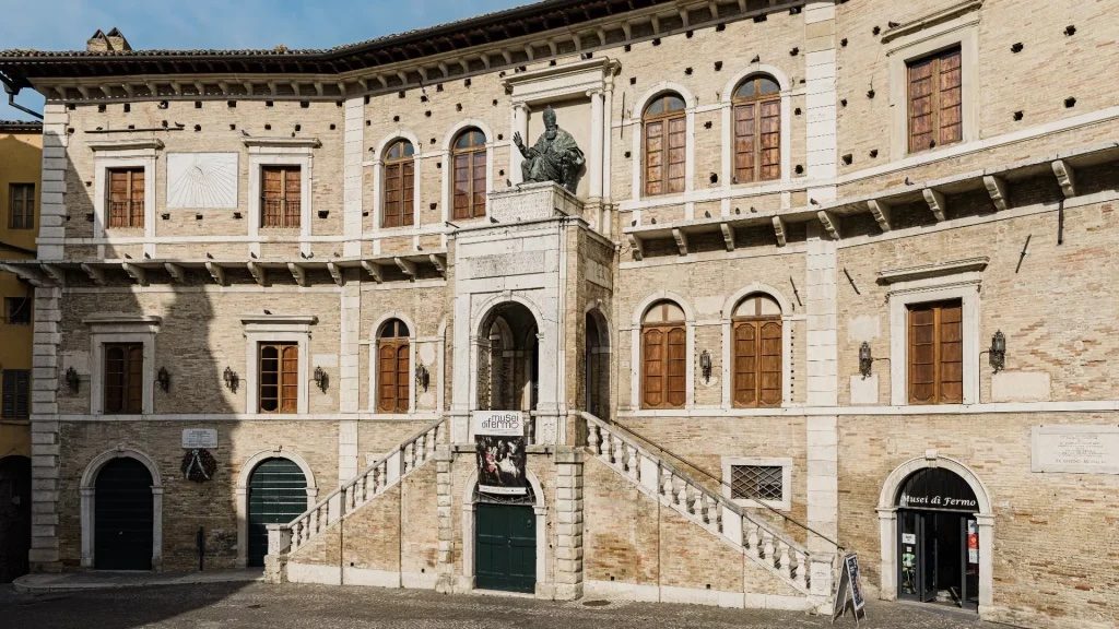 Tornando in superficie, risaliamo verso Palazzo dei Priori, che dopo essere stato il luogo per eccellenza della vita politica della città, è diventato, dagli anni Ottanta del secolo scorso, sede della Pinacoteca civica. Superate le stanze di rappresentanza – la Sala dei Ritratti, con i dipinti di nove cardinali fermani, tra cui Decio Azzolino il Giovane, e quelli di ventuno uomini illustri; la Sala dei Costumi, dove sono conservati abiti di priori, giubbe e livree di valletti, trombettieri e donzelli; la Sala del Sindaco e la Sala Consiliare – possiamo ammirare le pale di Rubens e Giovanni Lanfranco, il ciclo di dipinti murali di Andrea Boscoli e un importante nucleo di opere appartenenti alla collezione dell’architetto fermano Giovan Battista Carducci, dispersa dopo la sua morte nel 1879, tra le quali il Busto di Cristo in marmo – da alcuni attribuito a Michelangelo – esposto nella sala del Mappamondo. Lungo il percorso c’è spazio anche per un’opera di Vedovamazzei del progetto Bell, ideato e curato da Matilde Galletti, con cui Fermo si è aggiudicata il premio PAC2021 – Piano per l’Arte Contemporanea, promosso dalla DGCC – Direzione Generale Creatività Contemporanea del MIC – Ministero della Cultura.