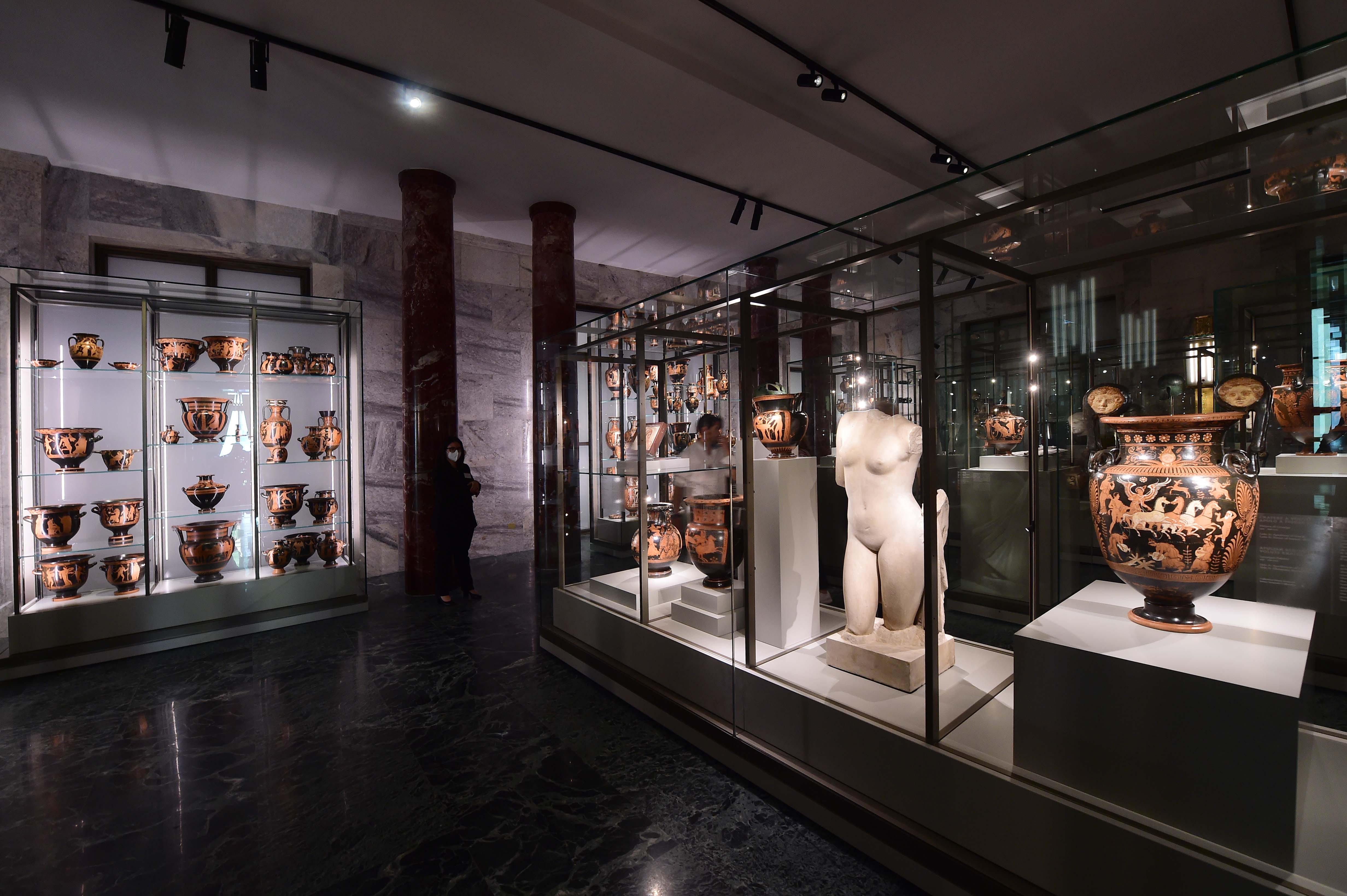 Sul contrasto tra ombre e luci gioca anche la sezione archeologica, al secondo piano, dove troviamo le ceramiche attiche e magnogreche, con 500 esemplari della storica collezione Caputi, trasferita da Vicenza a Napoli in accordo con le Soprintendenze competenti. Si tratta principalmente di vasi dipinti realizzati ad Atene, in Apulia e in Lucania, tra il VI e il III secolo a.C. e, tra i meravigliosi reperti, presentati in bacheche muscolari di vetro temperato e acciaio – allestimento curato da Fabrizio Paolucci – spicca la celebre Hydria Attica, raffigurante ceramografi al lavoro. Alcuni reperti esposti provengono poi dalle collezioni del Museo Archeologico.
