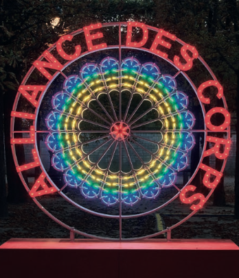 Attraverso le sue sculture luminose – ispirate a quelle che nell’Italia meridionale adornano i monumenti in occasione di alcune feste popolari – l’artista ridisegna gli ambienti del Palais de Tokyo producendo una scenografia il cui materiale narrativo incarna una storia e la luce viene utilizzata come architettura effimera.