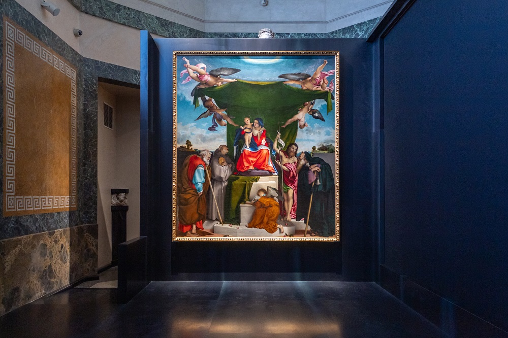 «Nel 2025 ricorrono i 500 anni dalla partenza di Lotto da Bergamo, città dove trascorse 12 anni della sua vita, forse uno dei periodi più felici di tutta la sua produzione artistica. Accademia Carrara ha pensato di dedicargli un progetto espositivo che è sia una celebrazione del suo genio sia un progetto per la comunità e il territorio. Infatti, con la chiusura per lavori della chiesa che abitualmente ospita la Pala di San Bernardino, abbiamo colto l’opportunità di presentare il dipinto in museo, mettendolo in relazione con i sette capolavori custoditi nella nostra collezione e riservandogli un allestimento che permette di apprezzarne tanto i dettagli quanto la magnifica orchestrazione d’insieme. L’eccezionalità della rappresentazione risiede nel suo vibrante naturalismo e nell’originalità delle invenzioni formali, come ad esempio il baldacchino effimero costituito dal drappo verde sorretto da quattro angeli in pose acrobatiche. Con Dentro Lorenzo Lotto, il museo contribuisce anche economicamente ai lavori di ristrutturazione della chiesa, con un gesto concreto che riporta al ruolo sociale di un’istituzione culturale come Fondazione Accademia Carrara».