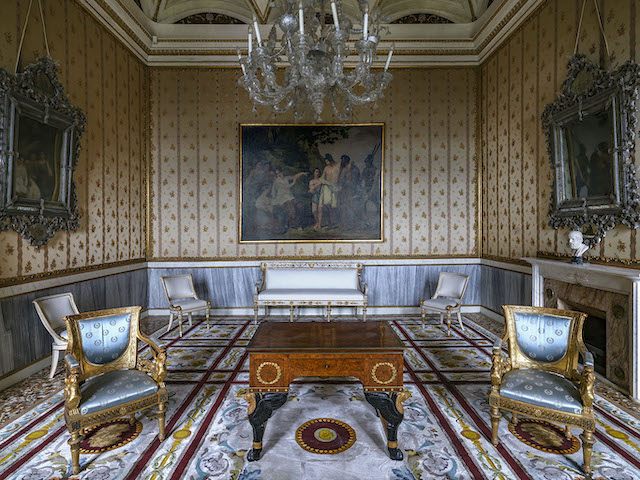 Si tratta di grandi elegantissimi ambienti, estesi su circa 850 mq, ciascuno connotato secondo lo stile degli Ospiti che vissero qui in alcuni periodi. Decori e mobilio sono all’altezza delle teste coronate che ne godettero per soggiorni più o meno prolungati. Da Napoleone, a Francesco Giuseppe e all’Imperatrice Sissi, a Massimiliano d’Asburgo, Imperatore del Messico, a Vittorio Emanuele di Savoia e, via via, sino al Umberto I. In questi saloni è passata la Storia italiana ed europea. Concluso il tempo dei re e imperatori, quei saloni sono diventati uffici e archivi a disposizione dello Stato e dei suoi funzionari, cosa che inevitabilmente ha comportato la cancellazione di gran parte delle decorazioni e degli arredi esistenti.