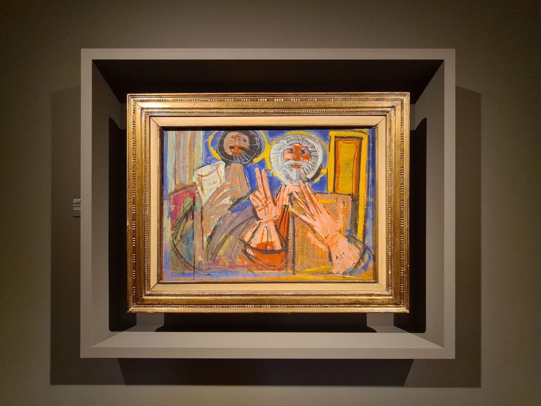 Le opere sono Pesci sul tavolo (1932), La camicia bianca (1935 c.), Deposizione (con angelo)(1945), Cosma e Damiano benedicenti (1951), Santone (evangelista) (1955-56), «opere che rappresentano in modo significativo gran parte del percorso artistico e di ricerca di Luigi Spazzapan, il quale, dopo il periodo di attività svolta nell’Isontino dal 1928, si trasferì a Torino rimanendovi per tutta la vita». In questa occasione – ha proseguito il museo – le opere del fondo “Milva Biolcati – Maurizio Corgnati” sono esposte «assieme a una selezione di sue opere appartenenti alle collezioni Giletti e Citelli, in un allestimento che ripercorre l’intero iter artistico di Spazzapan: dai primi richiami all’Espressionismo che si condensano nell’incisività del segno e nella forza del colore, ai tratti più morbidi di derivazione impressionista francese, verso i quali l’artista virò dopo l’arrivo a Torino; dalle strutturazioni geometriche degli anni ’40, all’ultima fase informale, tutta puntata sulla predominanza del colore sulla linea».