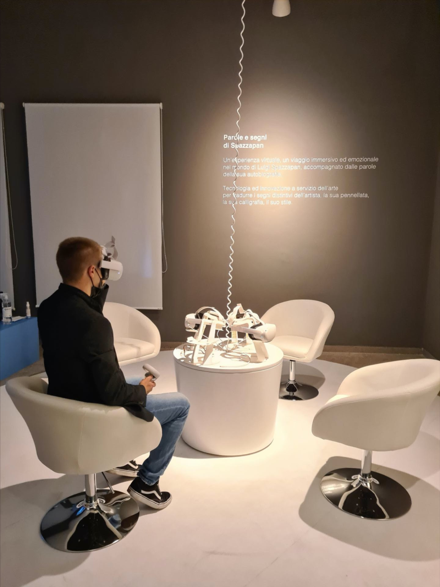 Nel percorso espositivo, ha ricordato il museo, due importanti collaborazioni arricchiscono l’esperienza dei visitatori. «Grazie alla collaborazione di Rai Teche, – ha spiegato il museo – nel corso della mostra è proiettato il film Ricordo di Luigi Spazzapan, realizzato da Maurizio Corgnati nel 1956, prezioso documento audiovisivo con testimonianze storiche, tra gli altri, di Lionello Venturi e Jettà Donegà. […] Ad arricchire ulteriormente gli spazi della Galleria e il percorso-mostra, – inoltre – è stata attivata la postazione permanente “Spazzapan VR”, a cura della Fondazione Cassa di Risparmio di Gorizia e realizzata da IKON digital Farm: un ulteriore step all’interno del programma triennale CariGO GREEN³ – avviato nel 2018 e realizzato con il fondamentale contributo di Intesa Sanpaolo – dove spiccano innovative soluzioni digitali applicate alla fruizione dei territori (Carso, Collio, Valle dell’Isonzo), come la digital landscape, estensione digitale del paesaggio. In particolare, l‘esperienza virtuale proposta nella postazione VR–Virtual Reality di Galleria Spazzapan consente al visitatore di affrontare con cuffie e visore un viaggio sorprendente, altamente immersivo ed emozionale nel mondo di Luigi Spazzapan, nella genesi del suo segno pittorico e della sua arte,accompagnati da pensieri e note tratte dalla sua autobiografia».