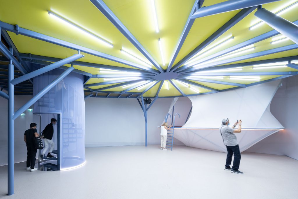 Trasformare il museo in un paesaggio di incontri e conversazioni portando il pubblico attraverso percorsi elevati, aree sceniche e zone di laboratorio – questo l’intento del nuovo intervento effimero pensato dallo studio SO-IL di New York di Florian Idenburg e Jing Liu per il MAAT. Una candida struttura in cui entrare, salire, passare, infilarsi, sdraiarsi, destinata ad accogliere maat Mode, un programma pubblico sperimentale di sei mesi voluto dalla nuova Direttrice Beatrice Lanza.