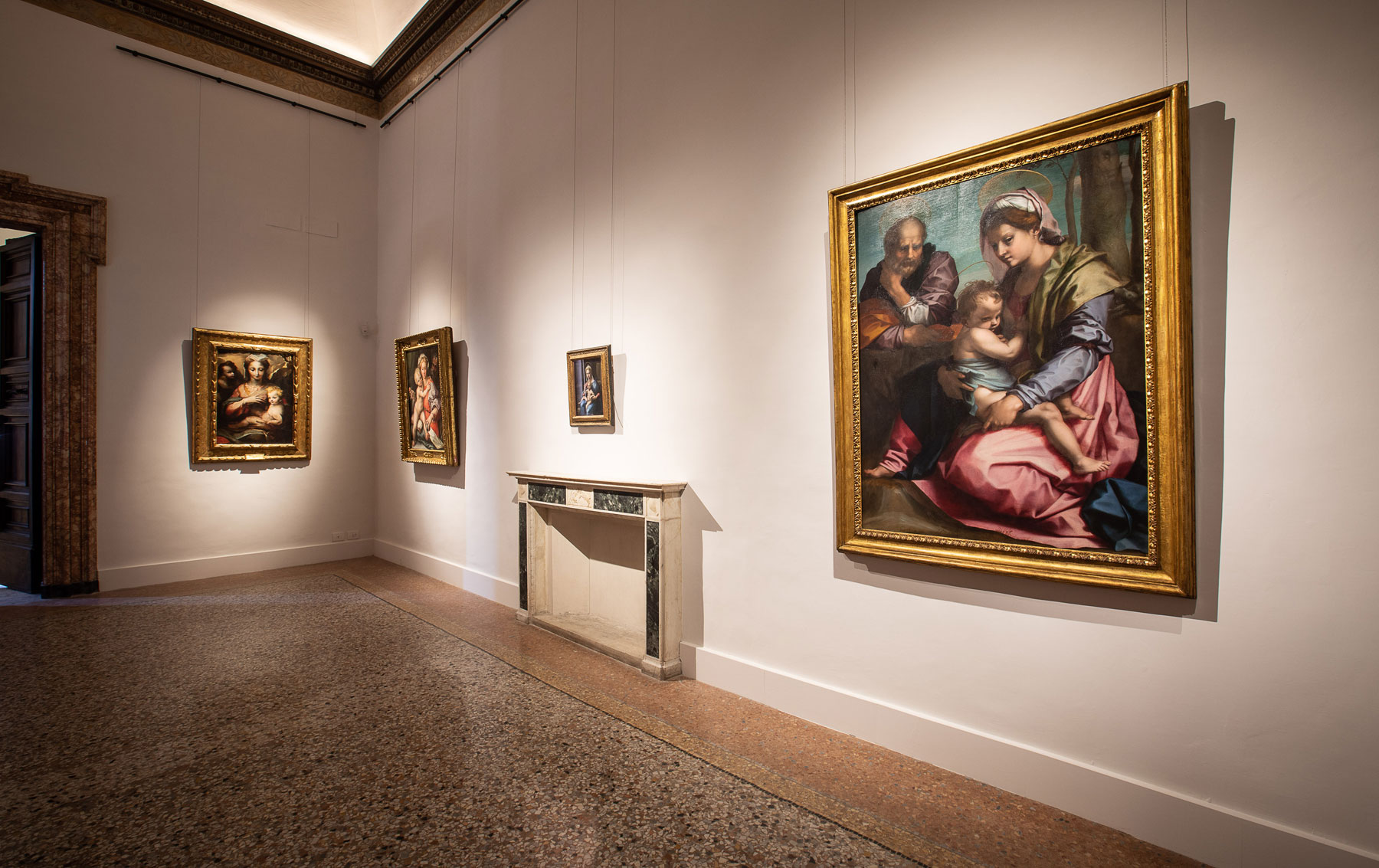 La sala 12, intitolata “Tradizione e devozione”, affronta il soggetto della sacra famiglia, proponendo opere come quella di Andrea del Sarto, con una umile Madonna che poggia il piede sulla paglia, o come quella più sontuosa di Perin Del Vaga, la Madonna con Bambino e san Giovannino del Beccafumi, la Madonna Hertz di Giulio Romano e un dipinto di Martino Piazza, che ci colpisce per il fitto repertorio leonardesco fatto di simboli relativi all’incarnazione e resurrezione del Messia.