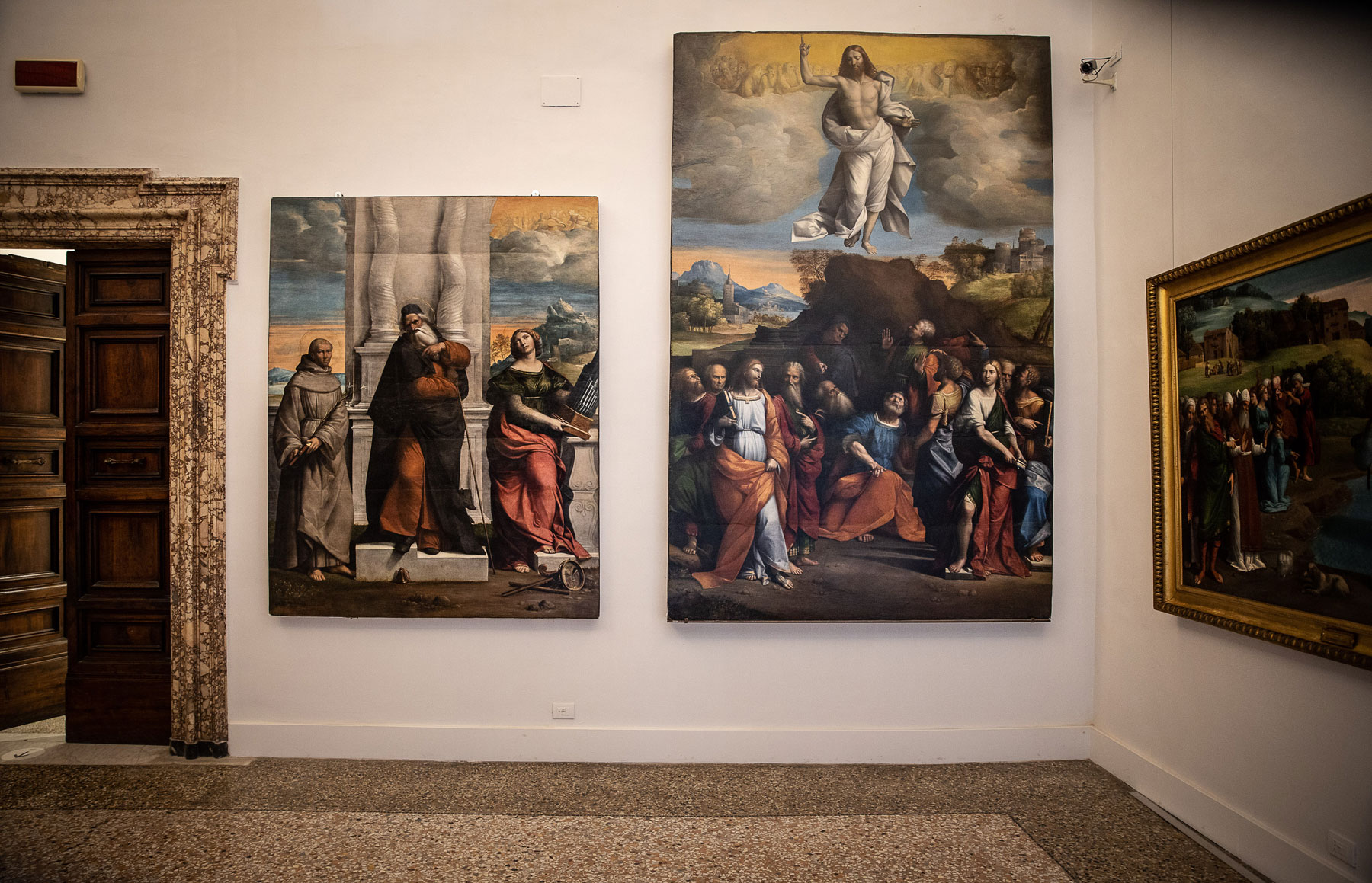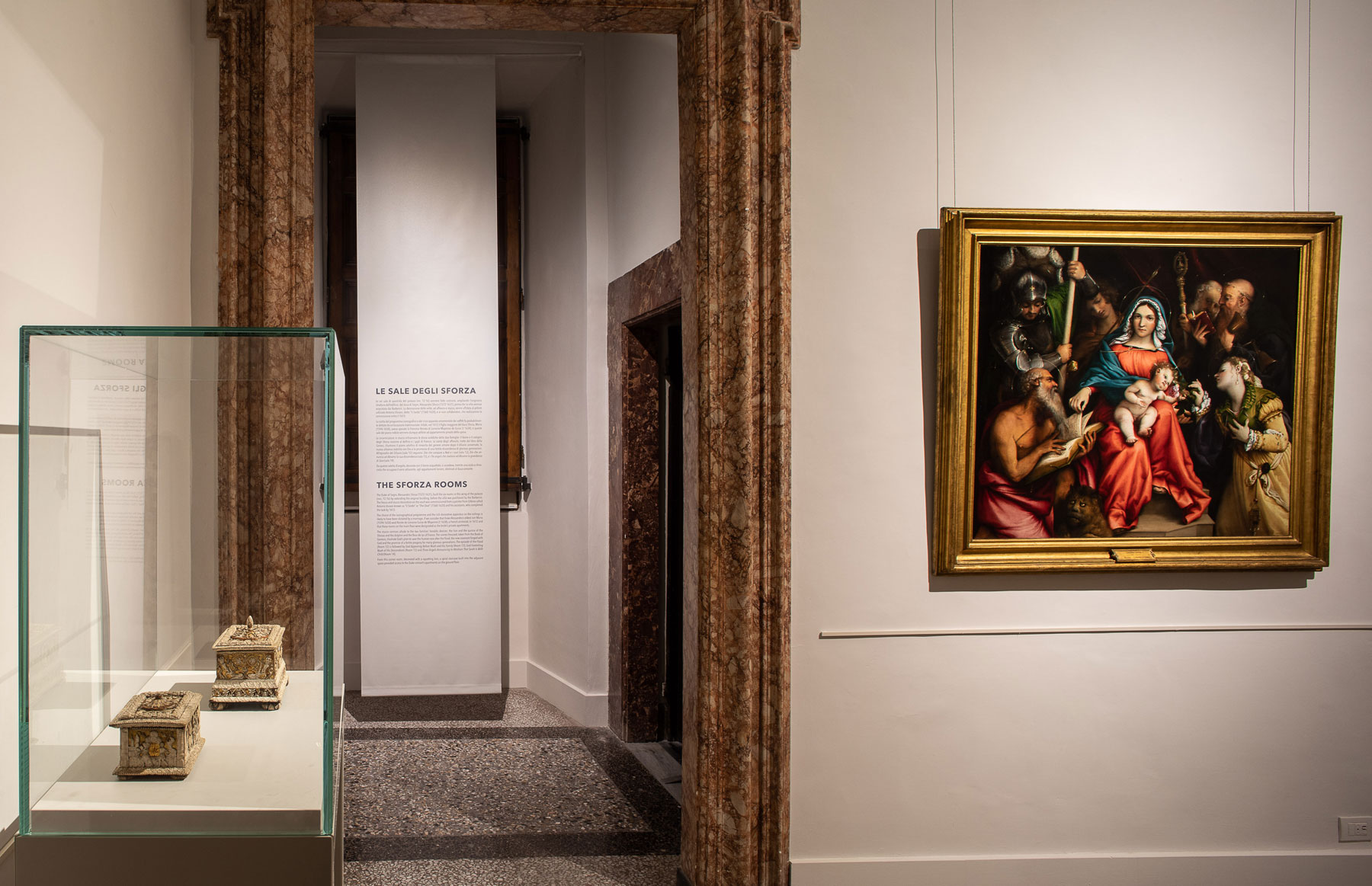 La sala 13 dona grande risalto soltanto all’opera di Lorenzo Lotto: il Matrimonio mistico di santa Caterina con i santi Girolamo, Giorgio, Sebastiano, Antonio Abate e Nicola di Bari (1524):un’opera firmata e datata che è stata realizzata in occasione del matrimonio di Marsilio e Faustina Cassotti.