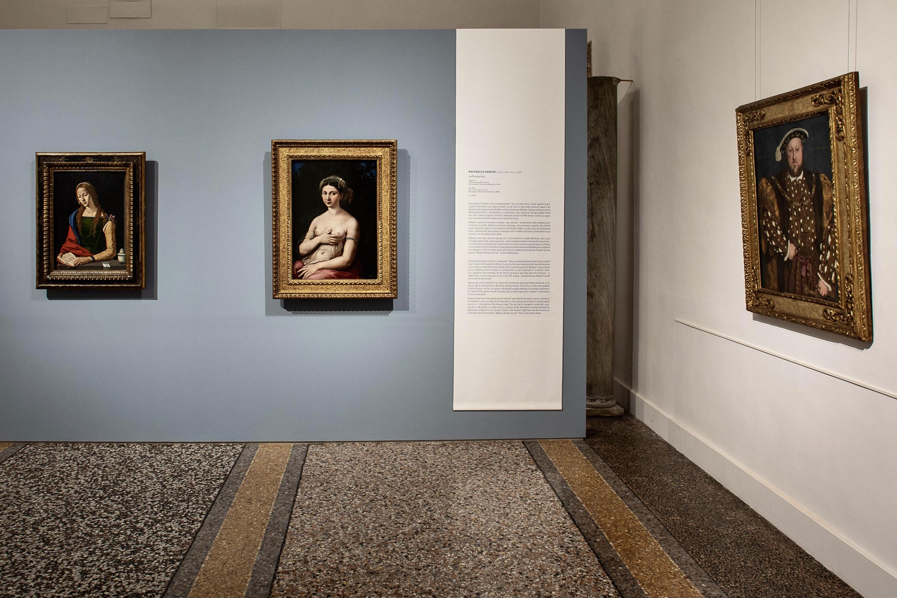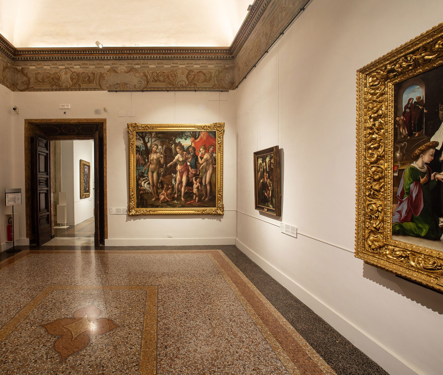 Le 42 opere esposte nelle sale del Cinquecento, quasi tutte appartenenti alle collezioni delle Gallerie Nazionali di Arte Antica, si sono arricchite per l’occasione di alcuni prestiti temporanei da collezioni pubbliche e private, e sono disposte su un’unica fila per consentire una migliore visibilità con accostamenti che seguono un ordine cronologico-geografico con approfondimenti monografici.