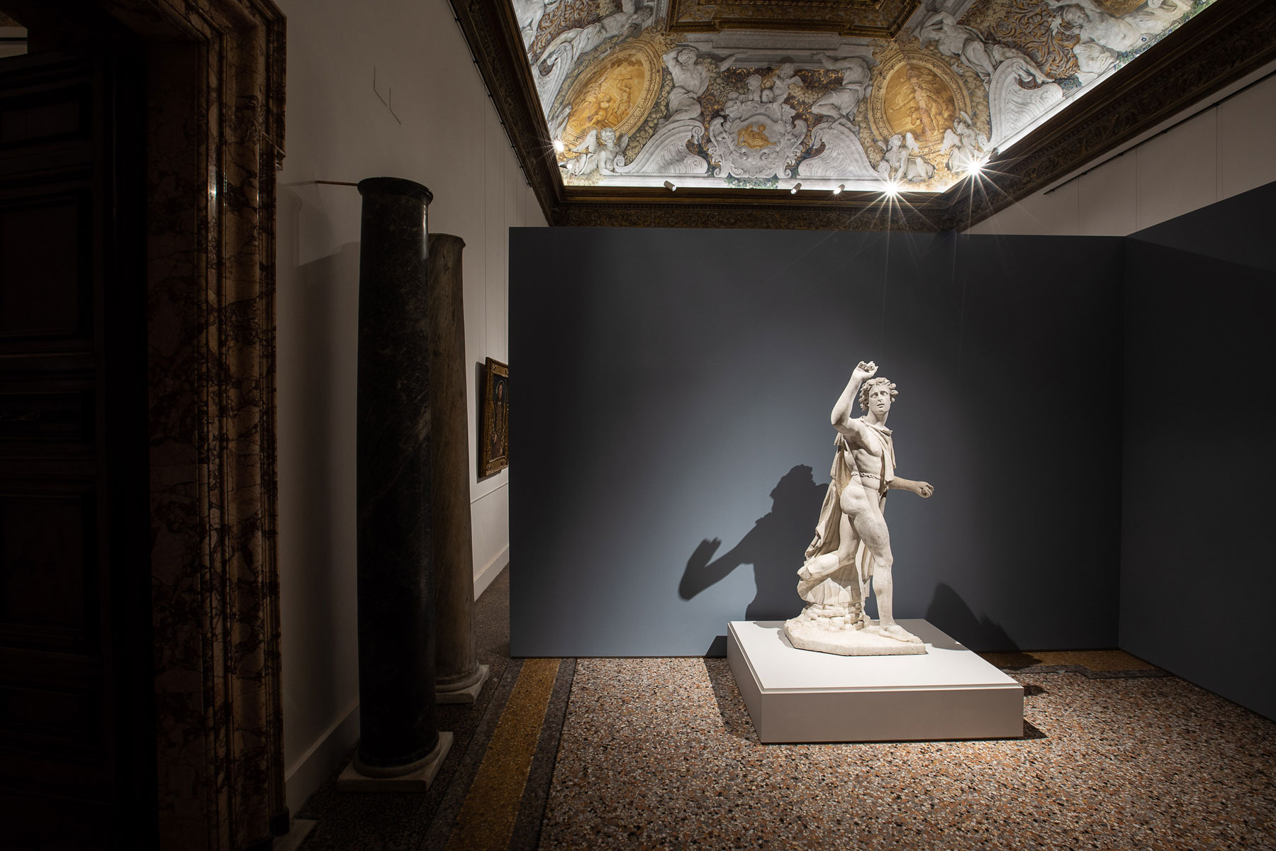 Il percorso espositivo si apre attraverso un chiaro riferimento all’attività collezionistica della famiglia che vede, come prima opera, il Galata, una copia romana del I secolo d.C. da originale ellenistico del II a.C., il quale, non essendo completamente integro, è stato rilavorato con le fattezze di Ippomene da Niccolò Menghini, lo statuario di fiducia del cardinal Francesco Barberini, che lavorò per la famiglia dagli anni Trenta del Seicento.