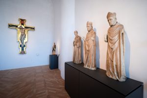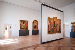 Accanto ad alcune opere musicali, con accompagnamento tratto direttamente dalle opere. “L’impostazione del nuovo allestimento nasce dall’esigenza di rendere il museo più accogliente”, spiega Marco Pierini, direttore della Galleria Nazionale dell’Umbria. “Sentiamo spesso parlare di accessibilità dei musei, ma non è la stessa cosa di essere accoglienti. Ritengo l’accessibilità, infatti, un requisito minimo: mentre voler essere accoglienti significa proporre un percorso logico e facilmente comprensibile, con una proposta chiara e semplice. Offrendo ai visitatori anche spazi e sedute che permettano una permanenza migliore”. Per le stesse ragioni, la Galleria ha deciso anche di snellire la collezione in mostra, passando dall’esposizione di 260 opere alle attuali 220, con le restanti 80 pronte nei depositi per poter sostituire all’occorrenza i “vuoti” creati dai futuri prestiti. Ma ha anche installato finestre che filtrano i riflessi solari ed elaborato delle piattaforme espositive mobili con ruote invisibili e un’anima in alluminio per le opere di grandi e medie dimensioni (72 in totale), realizzate dall’architetto beneventano Riccardo D’Uva.