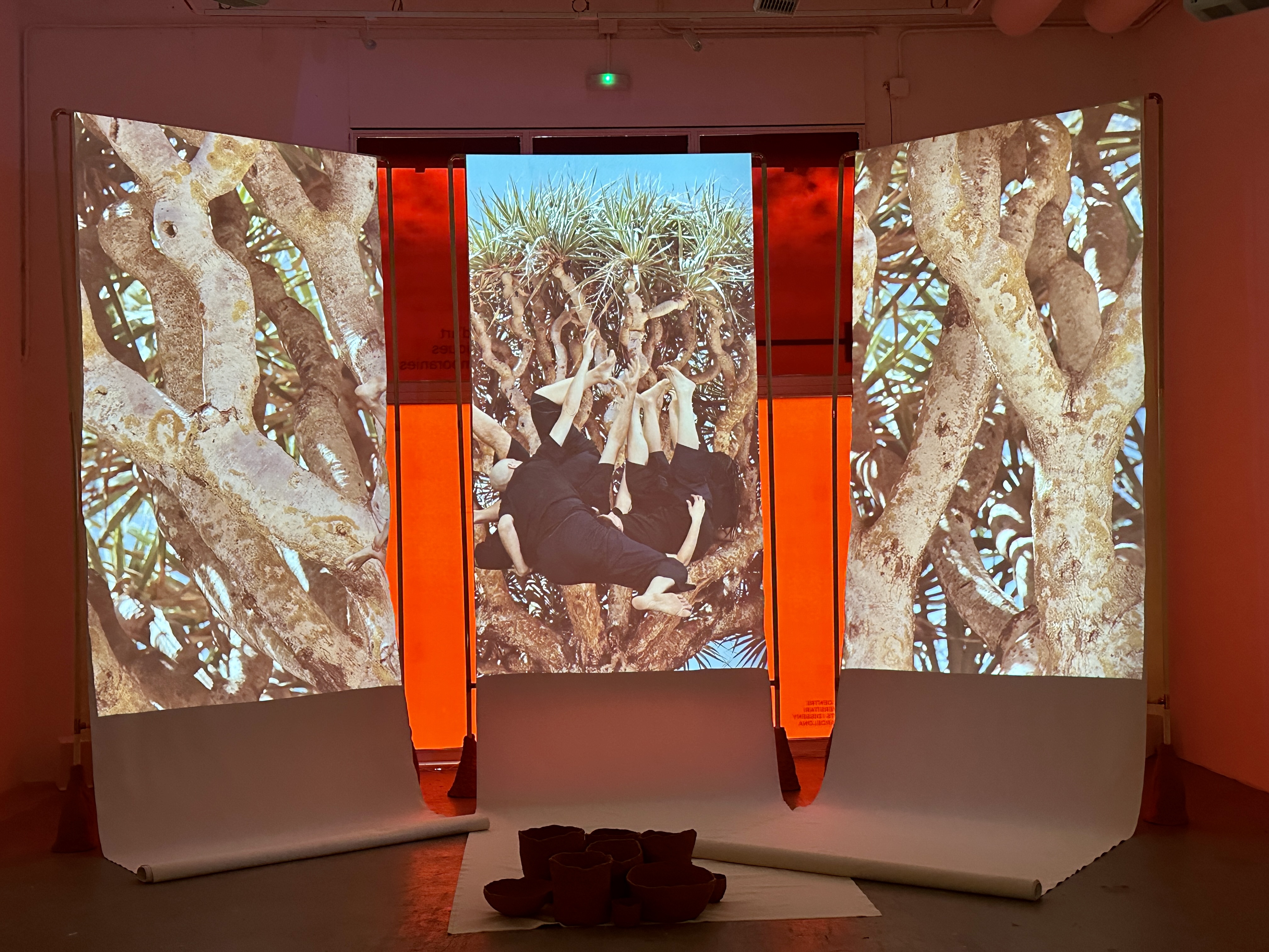 Ingrid Hora (1976, Bolzano) presenta invece Cloud Catchers, a cura di Emanuele Guidi: un’installazione video a tre canali, accompagnata da interventi scultorei, che riflette sul desiderio umano di dominare e contenere l’acqua, mettendo in dialogo immagini filmate nel Mediterraneo con flussi visivi provenienti dai social media e da fonti scientifiche.