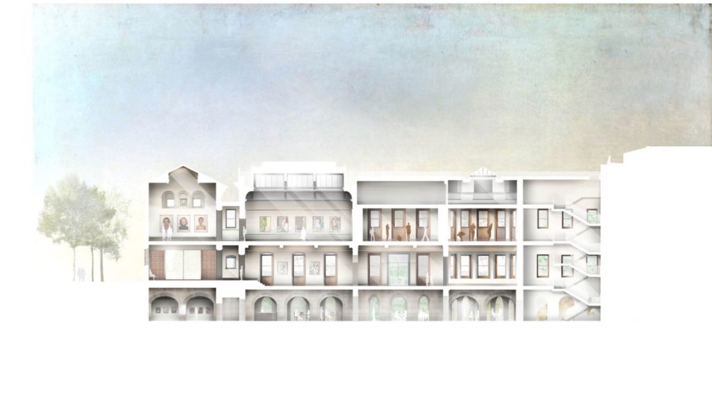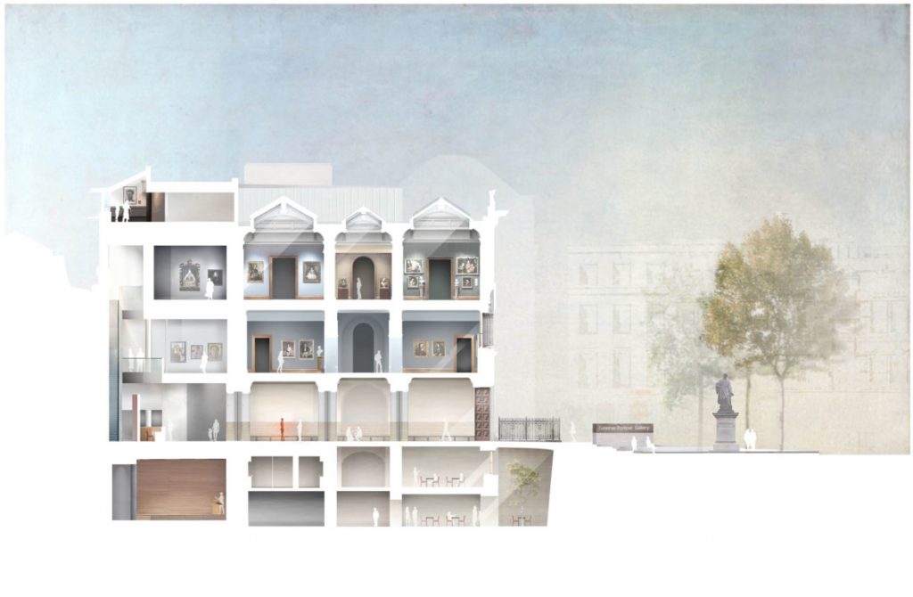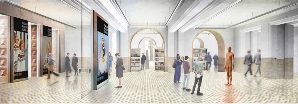 Il progetto di restauro della National Portrait Gallery, il più grande dalla sua apertura nell’edificio in St Martin’s Place nel 1896, è stato realizzato da Jamie Fobert Architects. Nel piano è compresa la completa ristrutturazione strutturale e statica dell’edificio, la creazione di nuovi spazi pubblici e un nuovo centro dedicato alla didattica. Tutto ciò consentirà un display assolutamente aggiornato della collezione. Che, in effetti, era esposta in maniera ormai quasi grottescamente classica. Mentre va detto che l’offerta di mostre temporanee è più che valida e anche piuttosto aggiornata. Attualmente, tra le altre esposizioni, sono visitabili quelle dedicate alle artiste Preraffaellite e a David Hockney.