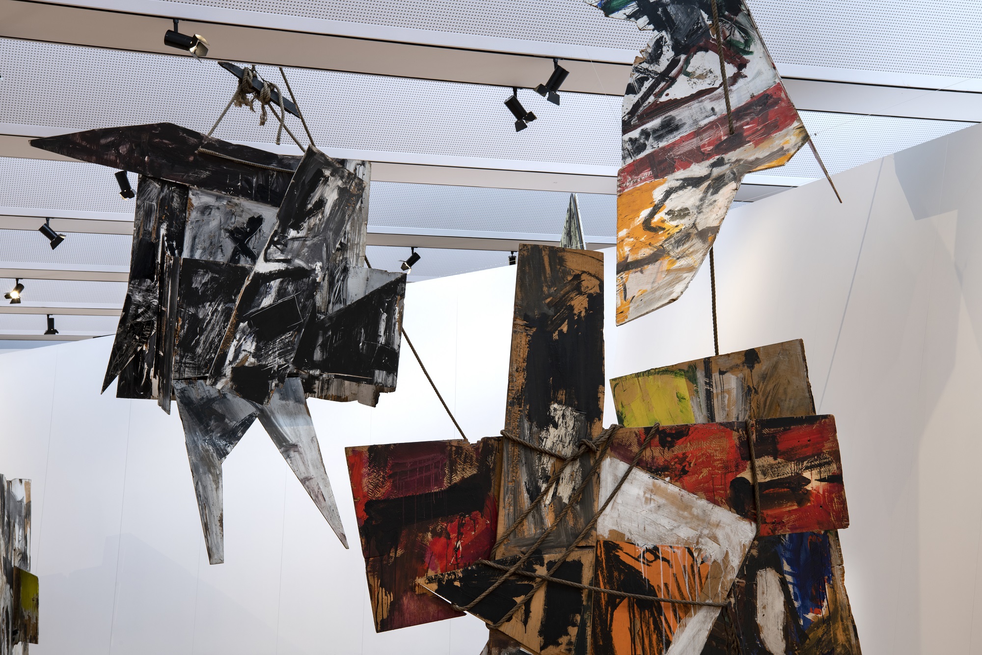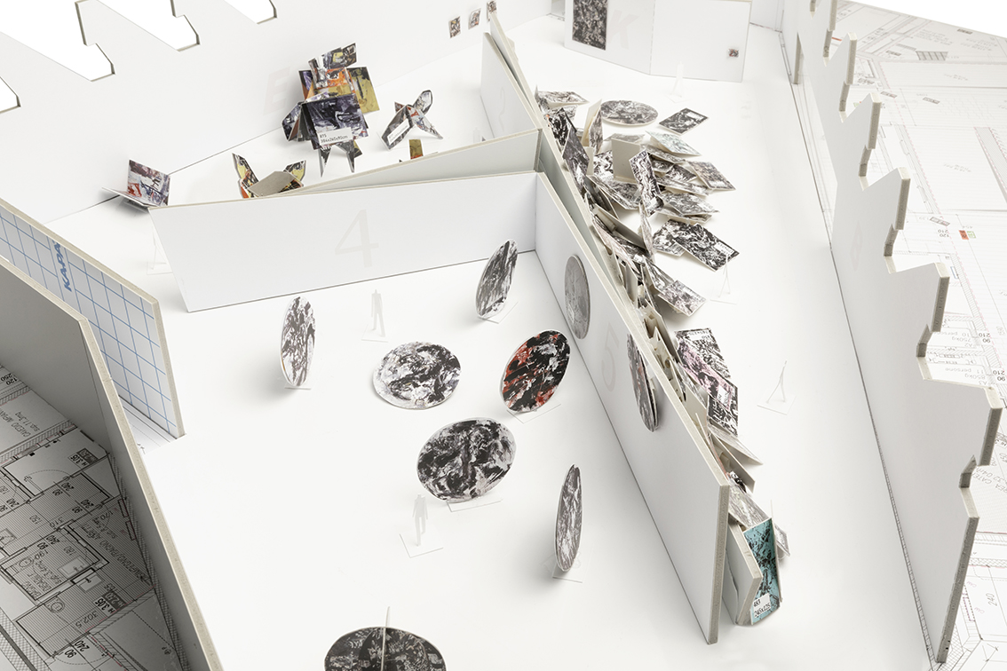 Un progetto che parte dalla conformazione della sala uno spazio asimmetrico di oltre 1200 mq con una luce intensa, che scende dalla copertura a shed del Museo. Il fulcro dell’allestimento è una struttura centrale, come una grande ‘scheggia’ che definisce i tre scenari legati ai cicli di opere esposti, tra i fondamentali capolavori dell’artista. La struttura è composta da tre fogli piegati e asimmetrici che scandiscono lo spazio e ne modellano il profilo, separando e al tempo stesso raccordando i cicli di opere esposti. Il percorso progettato da Alvisi Kirimoto sottolinea ancora una volta il ruolo centrale nell’arte contemporanea dell’artista, celebrando la sua permanente attualità.