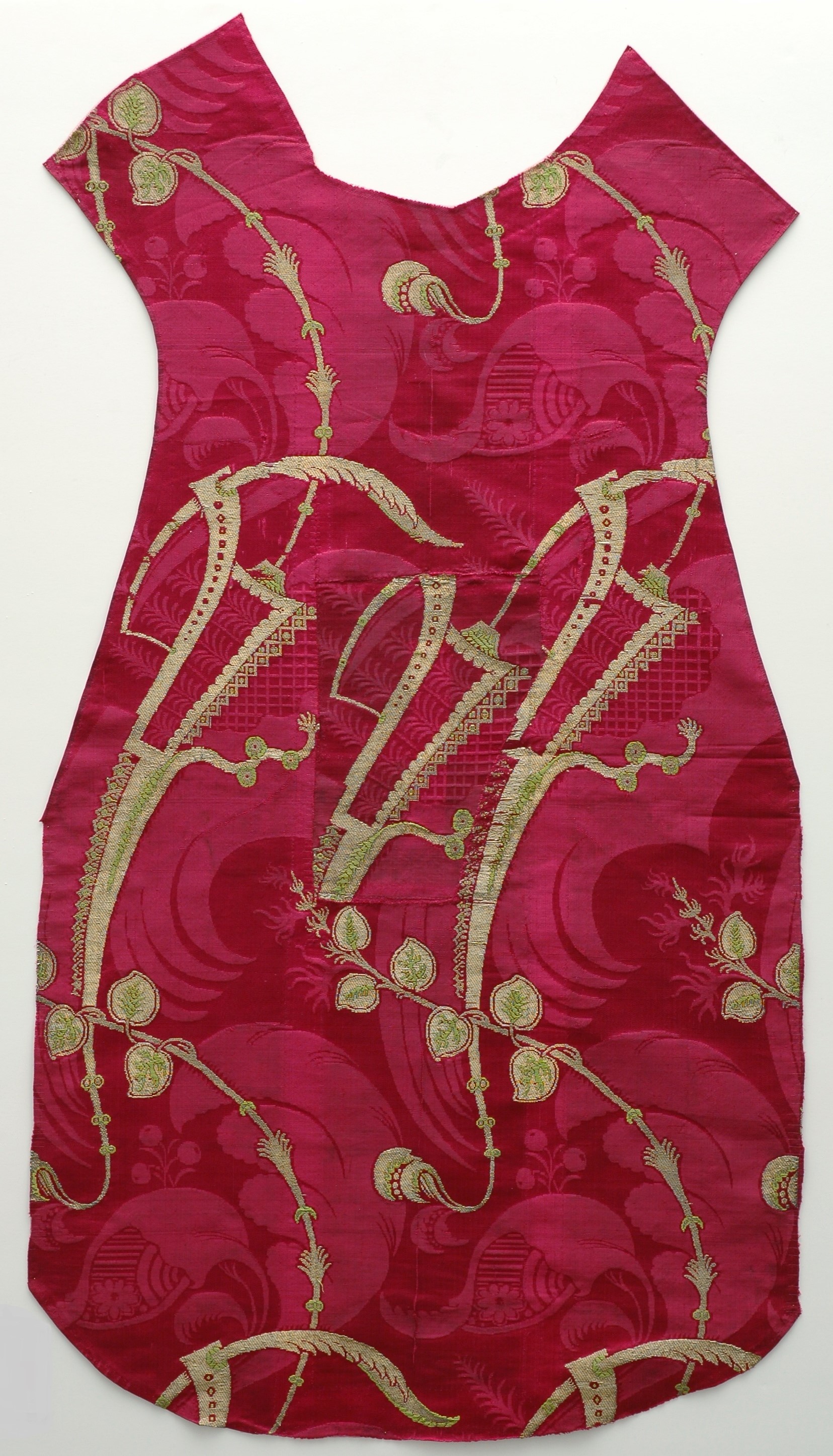 Affiancati nelle vetrine storiche della sala, teli da arredo e stoffe da abbigliamento raccontano il mutare del gusto decorativo nei secoli, con un focus sull’abbigliamento e sullo stile del XVIII secolo, quando i motivi bizarre, a pizzo, a isolotti, a meandri si avvicendavano rapidamente, seguendo la moda dettata da Parigi e dalle manifatture lionesi, che detenevano la palma dell’eccellenza.