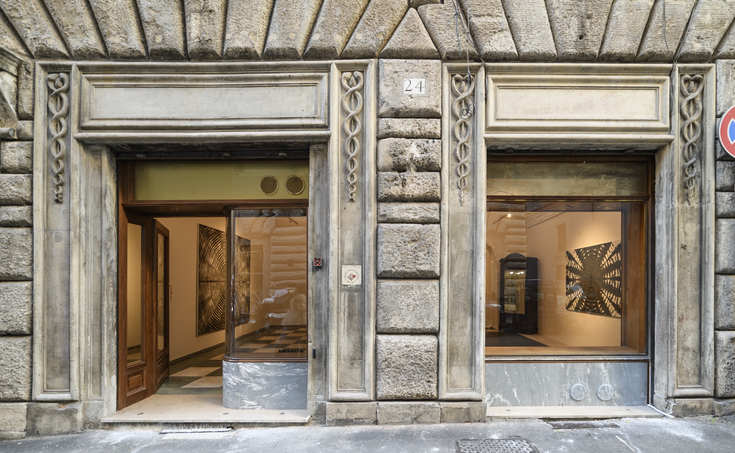 Situata al piano terra di Palazzo Crivelli, al civico 24 di Via dei Banchi Vecchi, la galleria trova sede in uno degli edifici rinascimentali più belli della città, noto per la sua facciata ornata di stucchi, putti, maschere grottesche e scene mitologiche che gli hanno conferito anche il nome di ‘Palazzo dei Pupazzi’.