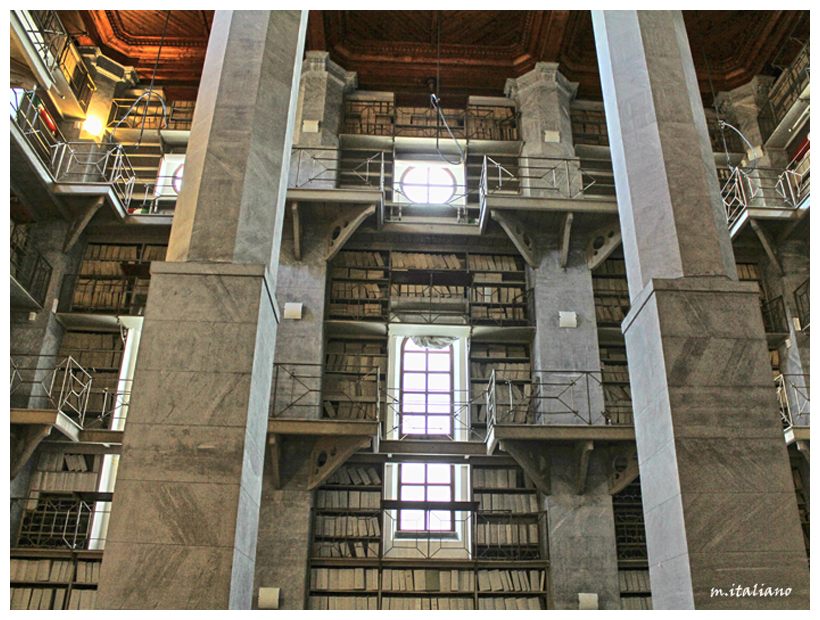 Ospitato nei locali appartenuti all’ex convento dei Padri Agostiniani Scalzi della chiesa di S. Nicola da Tolentino, edificato nel 1507 ed incamerato dal Comune nel 1866. Nel 1881, l’architetto Giuseppe Damiani Almejda progettò un volume chiuso ed una capiente sala con scaffalature, improntata a criteri razionali e fornita di espedienti tecnologici ripresi dall’architettura industriale del XIX secolo.