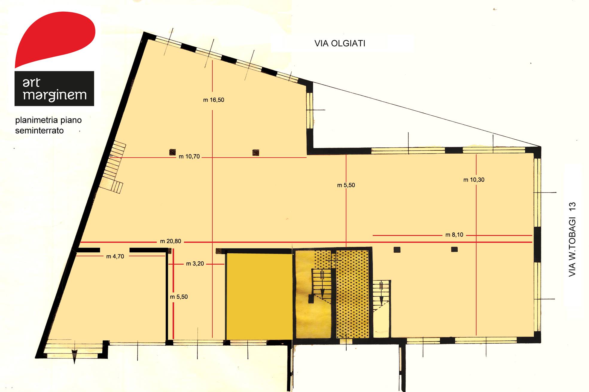 Spazio articolato su due livelli. 80mq. espositivi – 200 mq. laboratori