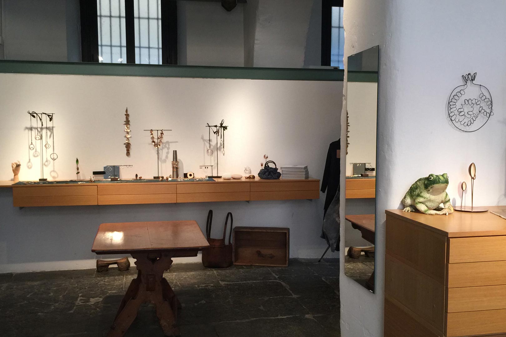 L’Atelier di Natsuko Toyofuku si trova nel cortile di un palazzo d’epoca in Corso Como 9. Lo spazio di circa 80 metri quadrati, rimasto inalterato nel corso degli anni, gode di un fascino d’altri tempi, con le sue grandi finestre che danno sul cortile, il pavimento in pietra e 4 grandi archi che, partendo da un unico punto centrale, lo suddividono idealmente in altrettante zone comunicanti tra di loro e si configura come luogo perfetto per mostre ed eventi.