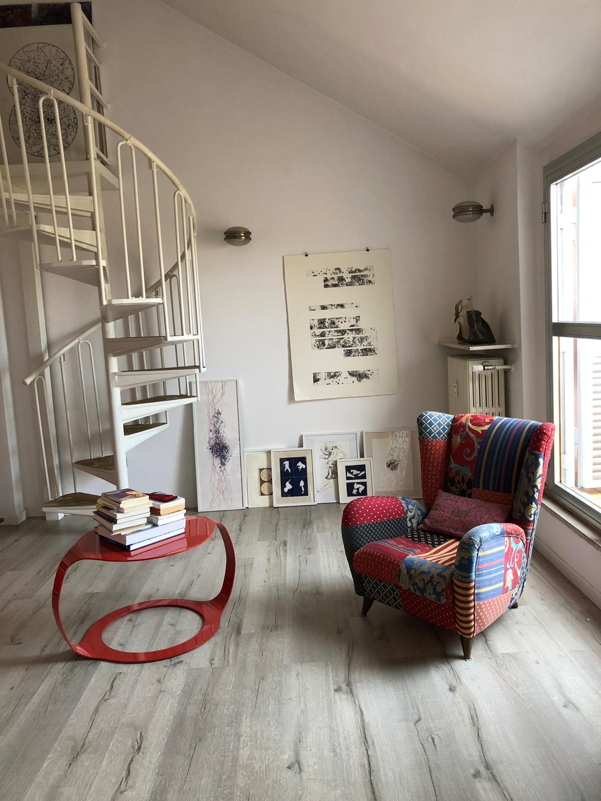 La casa-atelier dell’artista Paki Paola Bernardi guarda sui tetti di Chinatown, dai suoi terrazzini si vede la punta della Madonnina del Duomo da un lato e tutto il nuovo development di Porta Nuova con Bosco Verticale dall’altro. Un’open space abitato dal lavoro artistico e dai suoi strumenti, che occasionalmente ospiterà performance di altri artisti che traggono ispirazione dalla danza, e dalla ricerca corporea e spirituale.