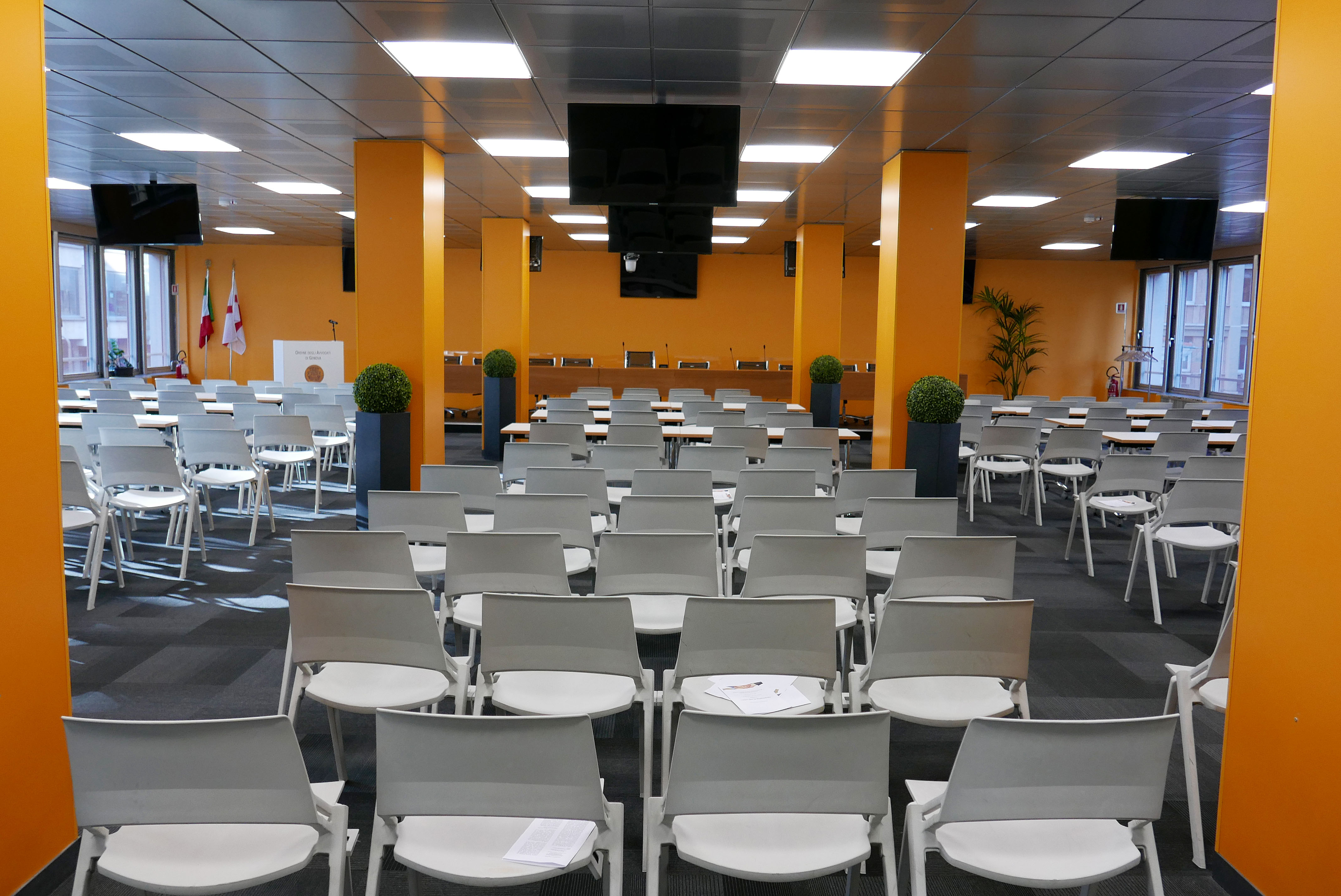 Il centro è dotato di due sale, l’una con 250 posti e l’altra con 50, destinate ad ospitare eventi formativi e culturali, la Scuola Forense, uffici di segreteria, una sala di lettura e lavoro, uffici per l’attività del Consiglio, servizi informatici e una sala avvocati ove sarà possibile incontrarsi, trascorrere eventuali momenti di pausa anche usufruendo di un servizio bar riservato.