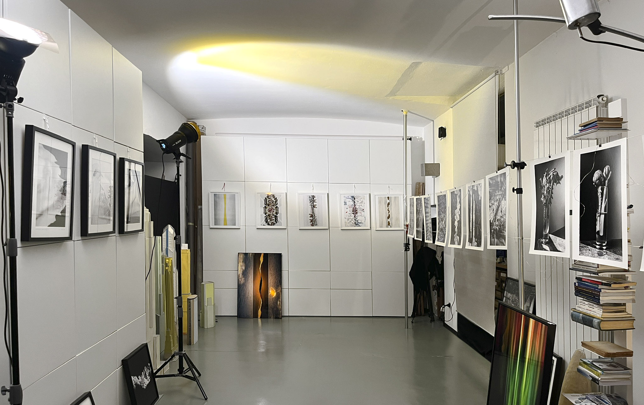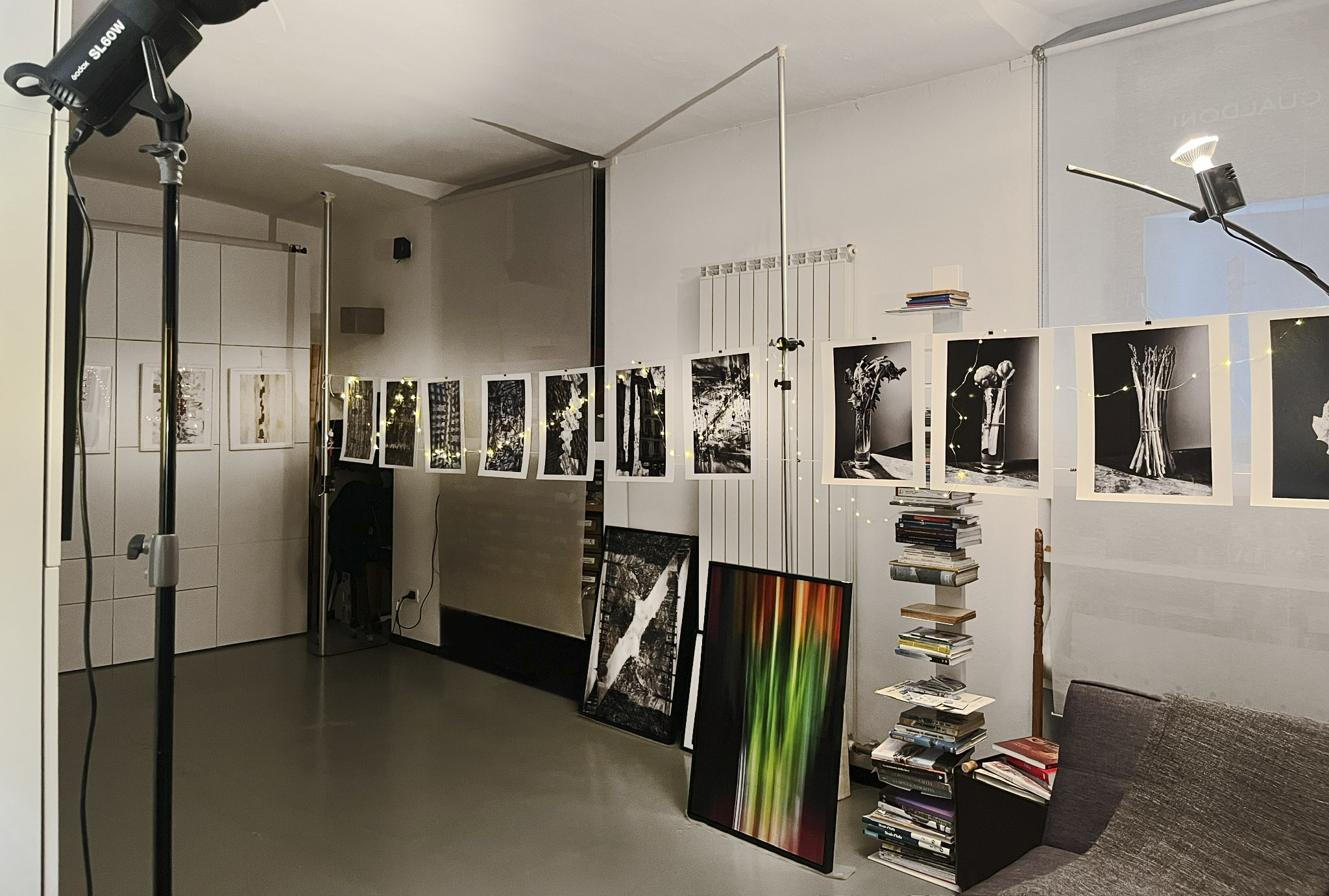 Piccolo studio fotografico situato all’interno di una corte milanese, trasformato estemporaneamente in spazio espositivo. Un ambiente operativo e raccolto, in cui le opere trovano una propria collocazione all’interno dell’ambiente che le ospita. Accesso da interno, non visibile dalla strada.
