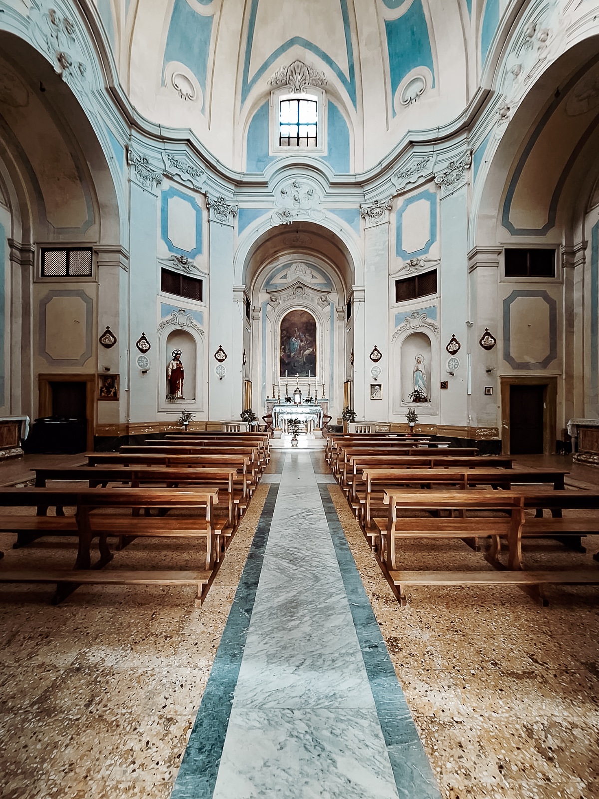 L’edificio, su progetto dell’architetto G. Sardi, è in stile barocco e a pianta centrale, coperto da una cupola suddivisa in vele. L’interno è composto da due altari laterali gemelli, da un presbiterio con altare maggiore e da quattro nicchie sulle pareti sulle quali emergono vari stucchi. Le opere all’interno risalgono alla prima metà del XVIII secolo. La chiesa e il collegio sono stati gestiti prima dalle suore oblate del Santo Bambino Gesù e dal 2019 dalle suore Collegine della Sacra Famiglia