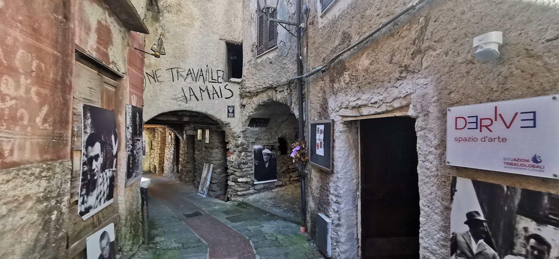 A Cosio d’Arroscia, dove nel 1957 nacque l’esperienza Situazionista, la Galleria Derive riaccende quella scintilla. Parte di un museo diffuso che include Muroscript R. e la Casa degli Artisti Tribaleglobale, la Galleria accoglie derive visive e pensiero critico, intrecciando presente e memoria. Un avamposto vivo del MAP – museo nomade di arte primaria – dove l’arte torna a farsi gesto, luogo, incontro.