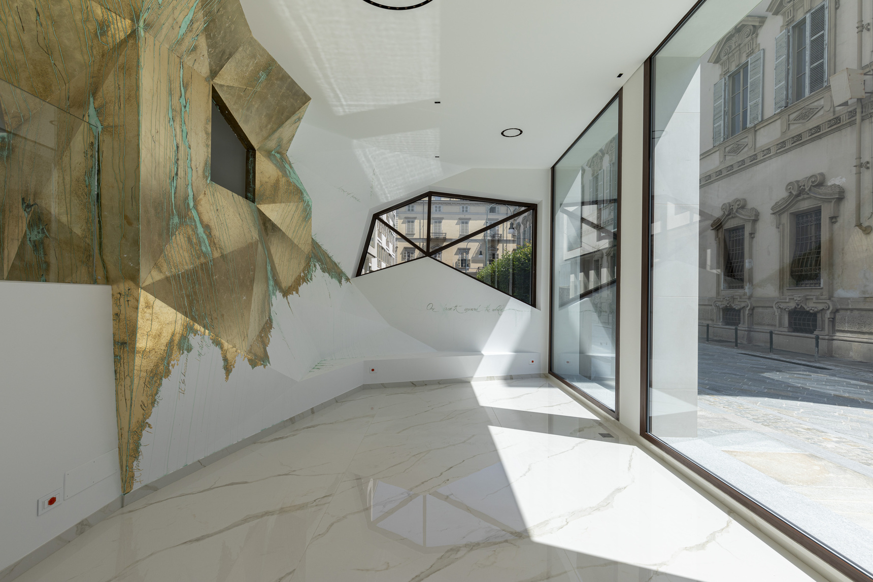Galleria d’arte open air e indoor di Domus Lascaris, palazzo razionalista degli anni Cinquanta reinterpretato in chiave modernista dal Gruppo Building e trasformato nella casa in cui abitare oggi nel cuore di Torino, a due passi da Piazza Solferino.