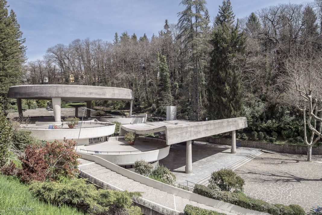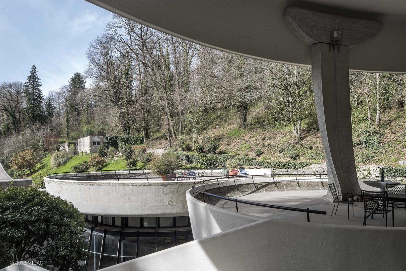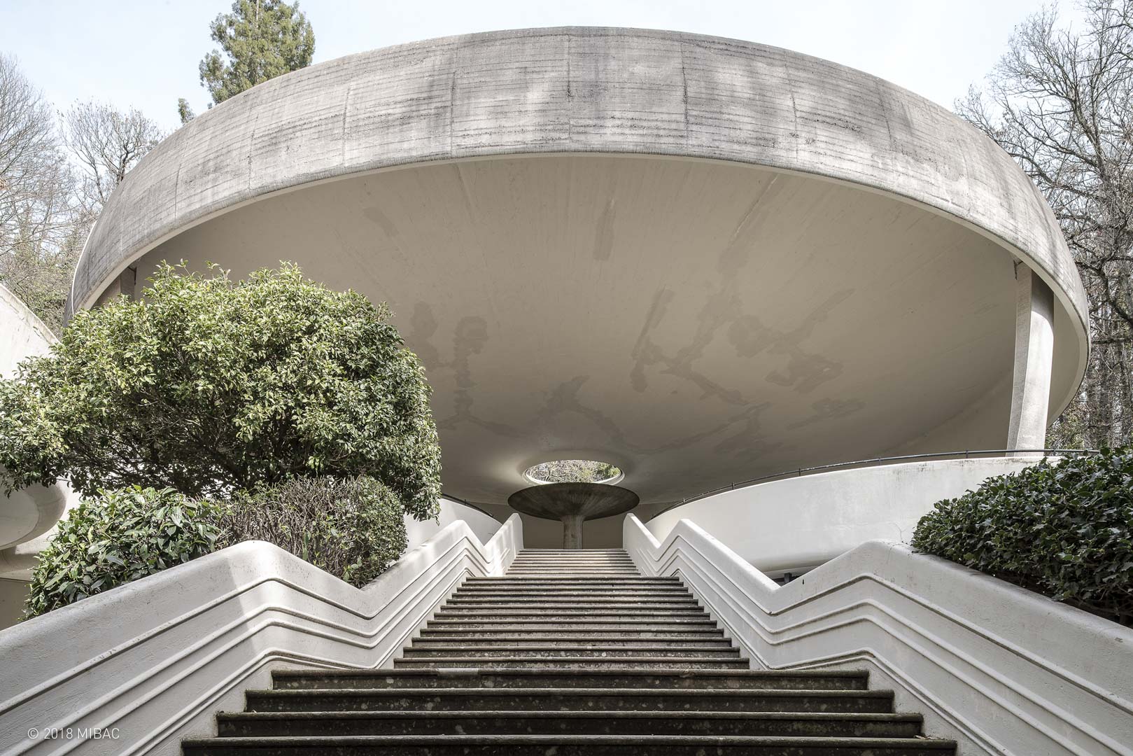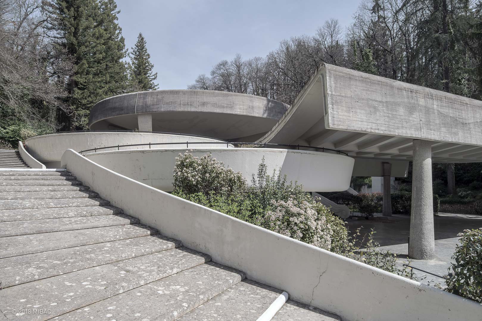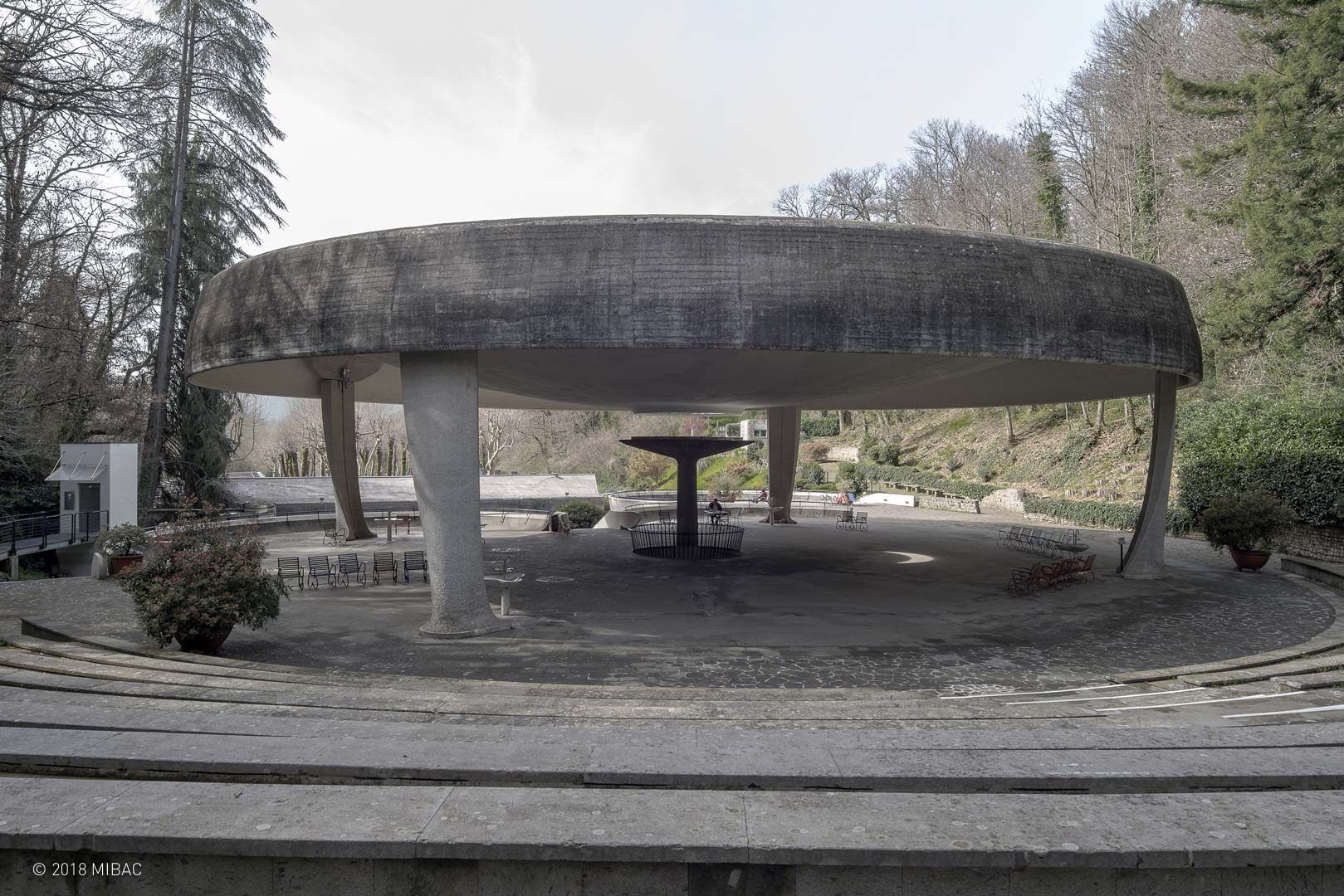 Il complesso termale della Fonte Bonifacio VIII di Fiuggi fu progettato dall’architetto Luigi Moretti tra il 1963 e il 1969. Immerso in un antico castagneto, è considerato un esempio di perfetta integrazione tra paesaggio naturale e corpi architettonici. La sua forma rotonda e il foro centrale ricordano il Pantheon romano.
