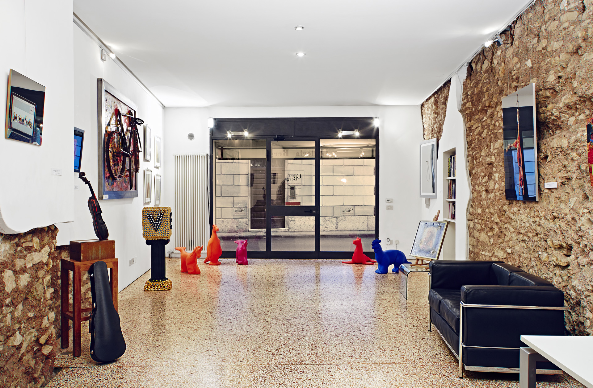 La Galleria Berga è situata in uno degli ingressi del Teatro romano di Vicenza eretto negli ultimi anni del I secolo a. C.: lungo le pareti dello spazio si conserva ancora l’originario tessuto murario del teatro.