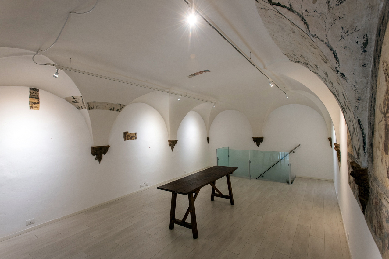 Lo spazio che ospita la Galleria Studio Cenacchi, fondata nel 2016, si sviluppa su tre piani distinti nel cinquecentesco Palazzo Ghiselli Vasselli, nel centro di Bologna.