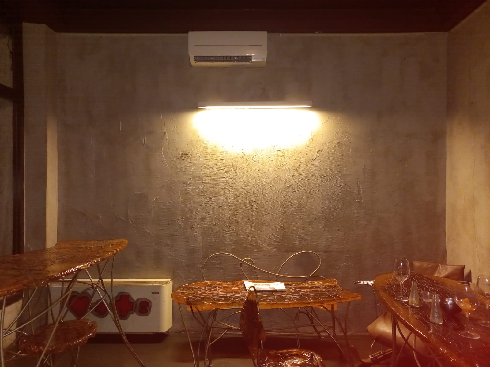 Locale pubblico dove si può fare colazione e aperitivi, molto curato la mobilia è realizzata in resina.. i muri sono grigio topo. Attrezzato per ospitare mostre d’arte. All’interno si trova anche un’opera di un’artista italiano permanente.
