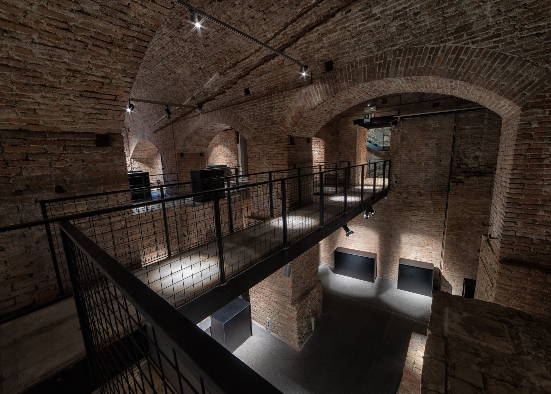 Lo spazio espositivo dei Magazzini del Sale è situato all’interno del Palazzo Pubblico di Siena e vi si accede dal Cortile del Podestà. E’ articolato su due livelli e ha una struttura a volta in mattoni. Furono riscoperti durante i lavori di restauro e recupero del Palazzo nel 1977 dopo essere stati completamente dimenticati. Nel corso dei secoli, erano stati malamente trasformati o addirittura cancellati da riempimenti di terre di riporto e detriti: tra questi, le fondamenta della Torre del Mangia, assai meno profonde di quanto si credesse, il passaggio del Bottino di Fonte Gaia e l’inaccessibile grande cisterna seminterrata di raccolta delle acque provenienti dai tetti del Palazzo.