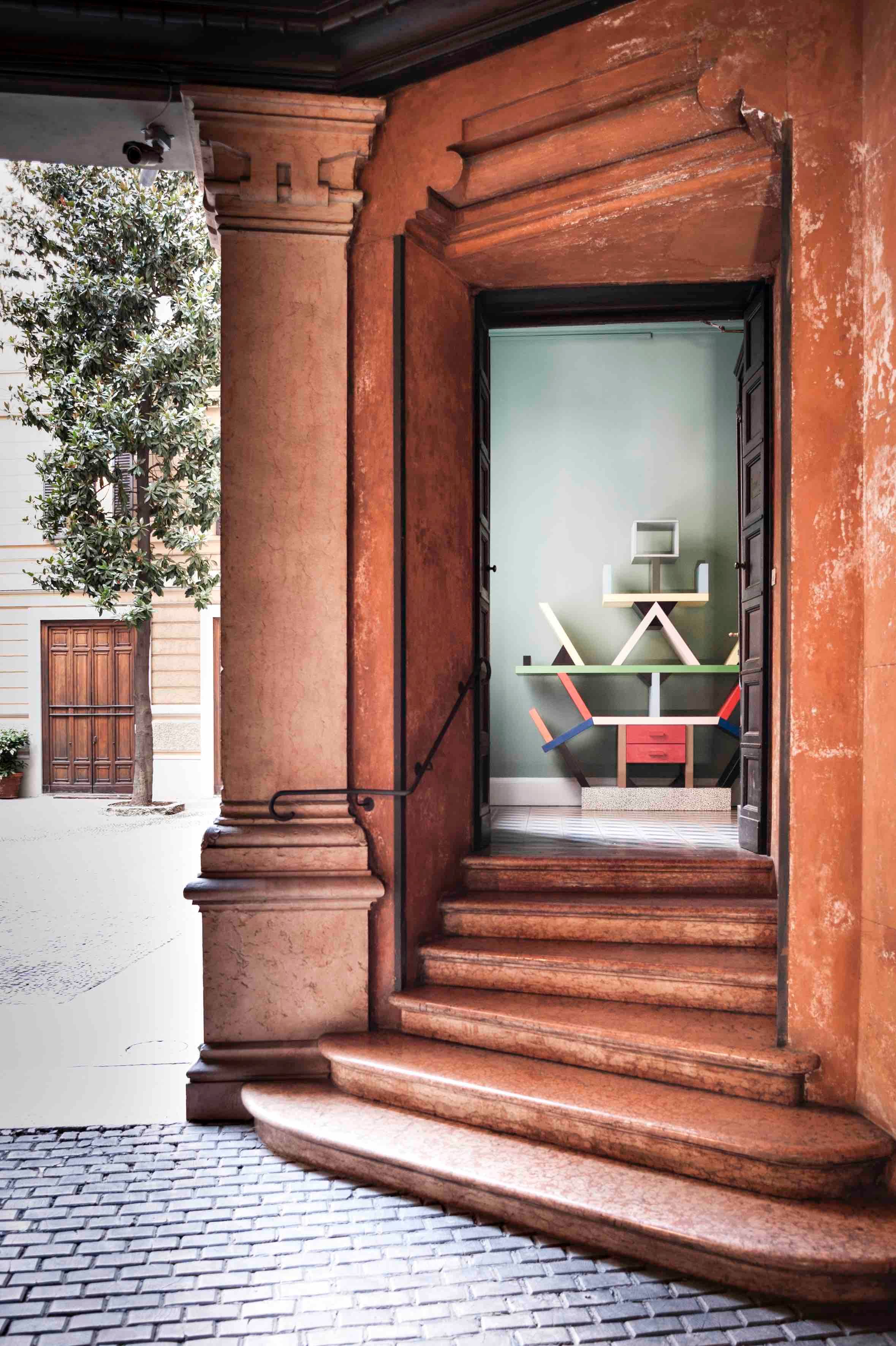 Ingresso della Galleria Post Design in Largo Treves 5, al centro del Brera Design District.Courtesy Memphis | Galleria Post Design. Foto © Luca Miserocchi