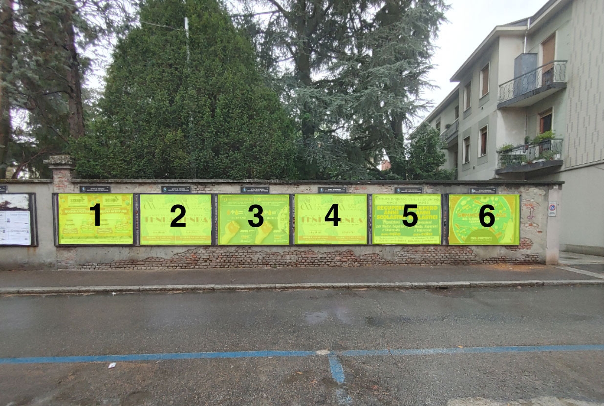 “Opere d’arte” su 6 manifesti affiancati,140x 200 cm, con opera difesa in 6 parti: 14 giorni di affissioni.