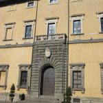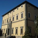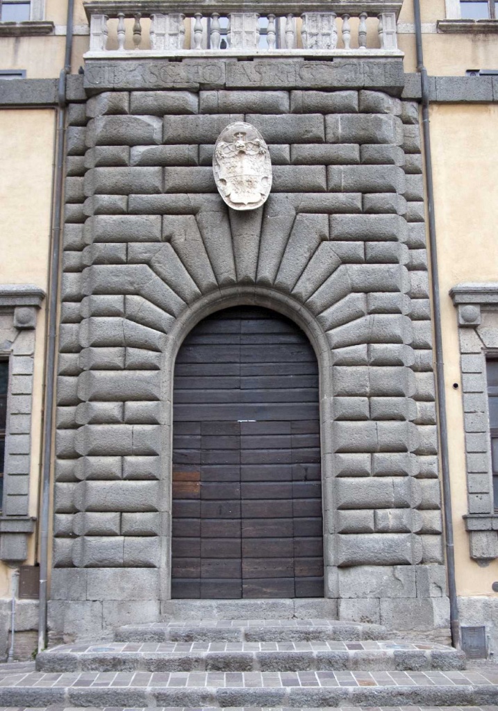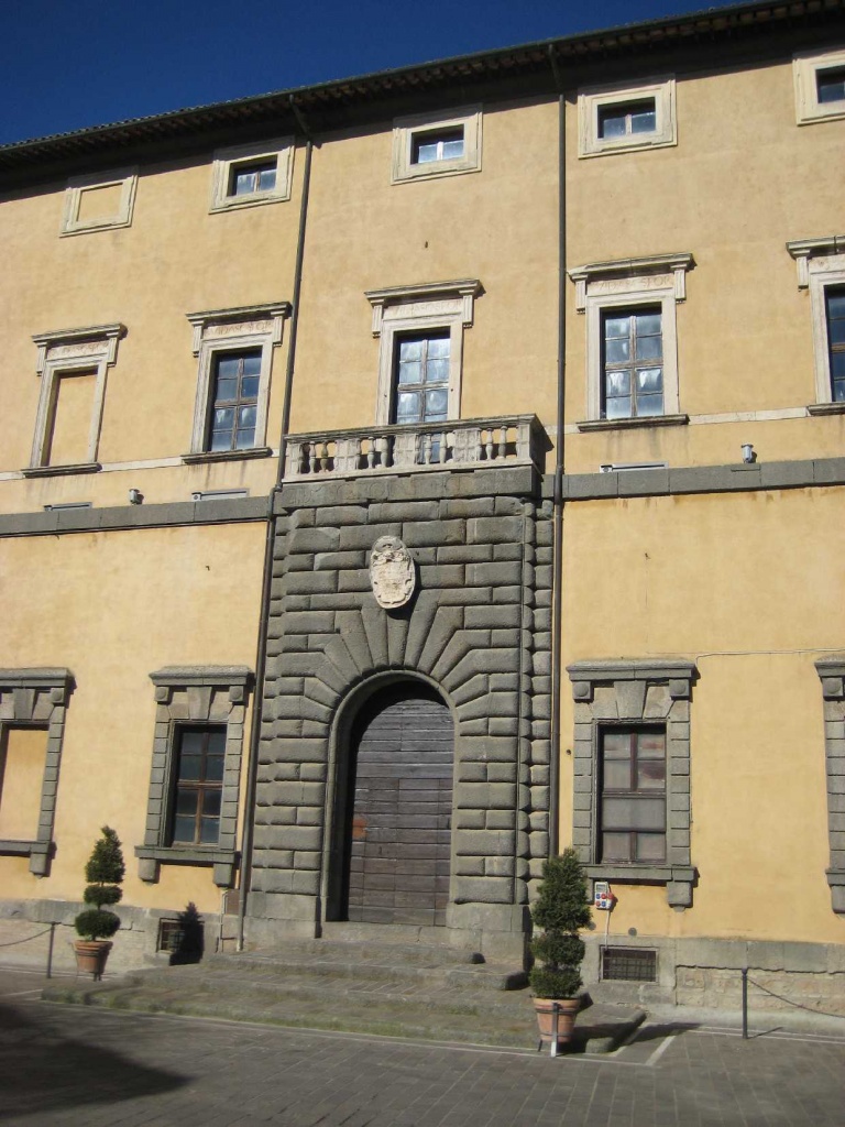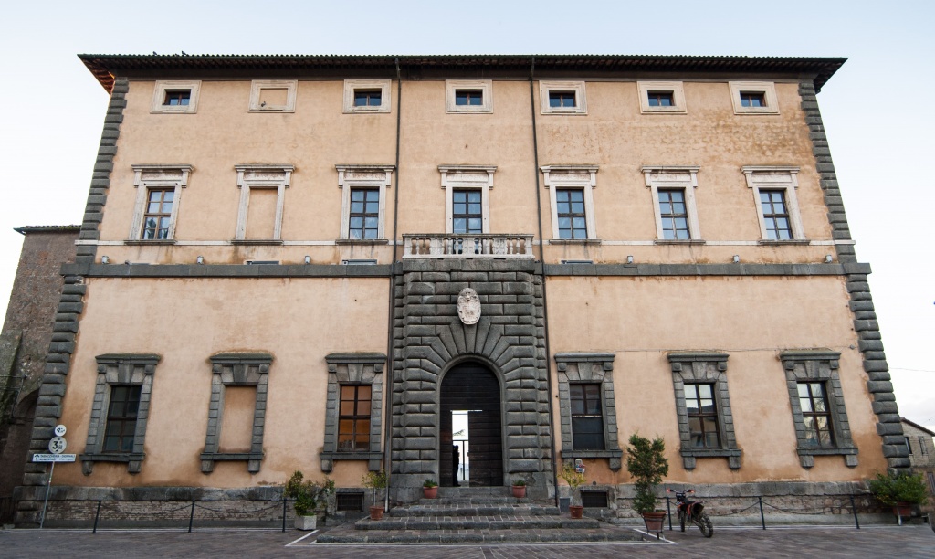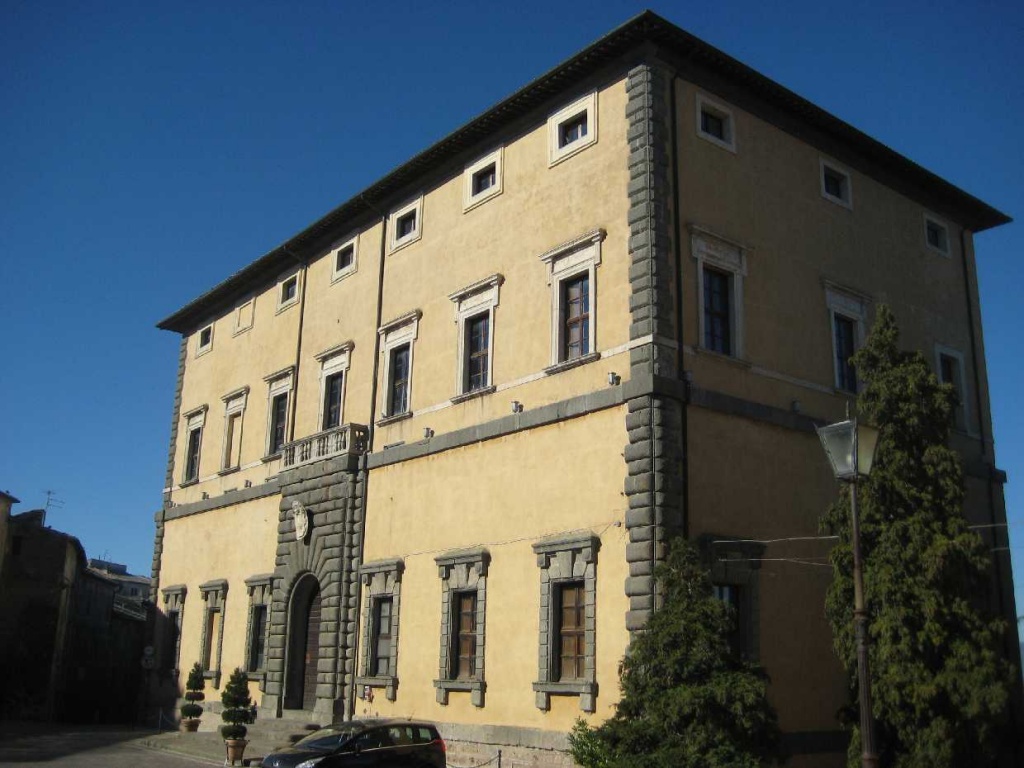 Edificato nel 1550 sulla piazza principale del borgo m.e, strategica porta sulla via Francigena tra Tuscia e Toscana, per volere del Card. Camerlengo di S.R.E. Guido Ascanio Sforza dei conti di Santa Fiora, fu progettato dall’arch. Giovanni Lippi “Nanni di Baccio Bigio”, con portale di bugnato (Sangallo?). Nel grande atrio resti di decorazione a fresco. Nel cortile è un antico pozzo in travertino. Al piano nobile salone con camino e sale affrescate con scene bibliche e profane (<Ovidio, Metam.)